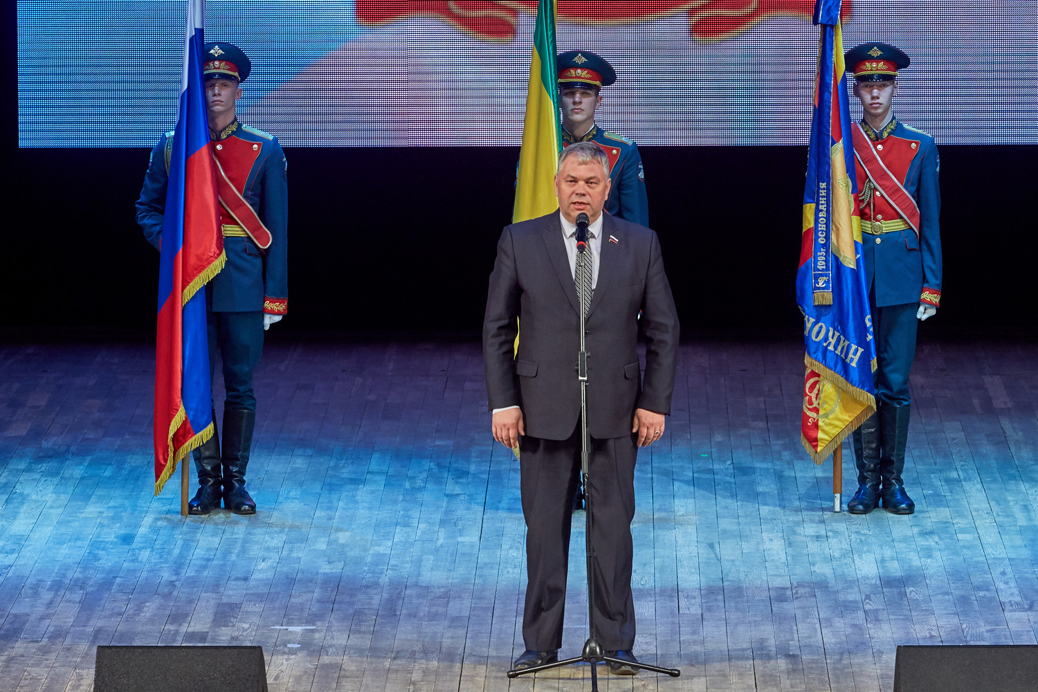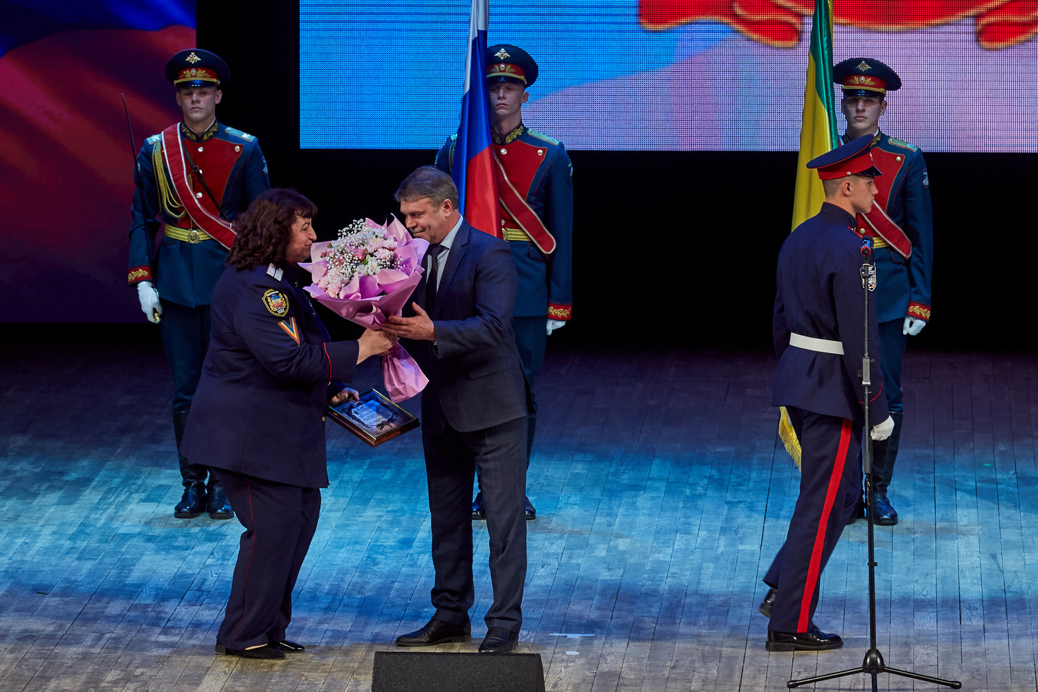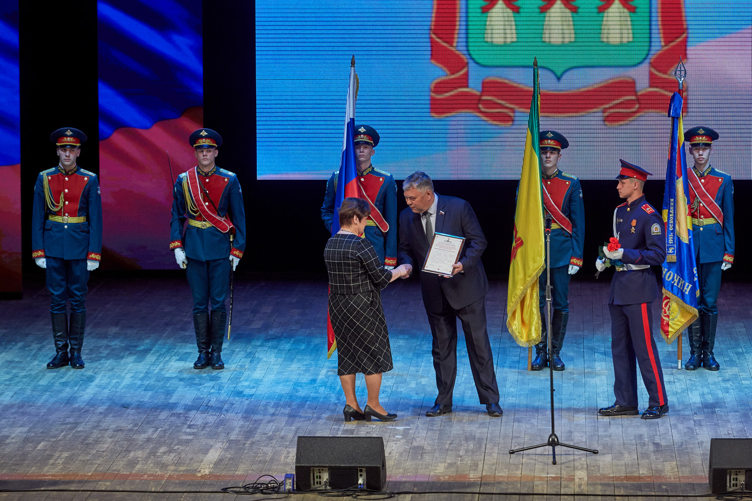 Первый заместитель Председателя Правительства Пензенской области Владимир Щёкин поздравил собравшихся от имени Губернатора и вручил Благодарность Министра обороны России директору учебного заведения Вере Рахмановой.