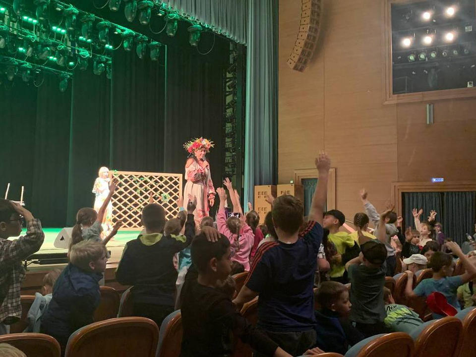 Вместе с музыкантами ребята водили на сцене хороводы, играли в игры, а также участвовали в увлекательных конкурсах и викторинах.