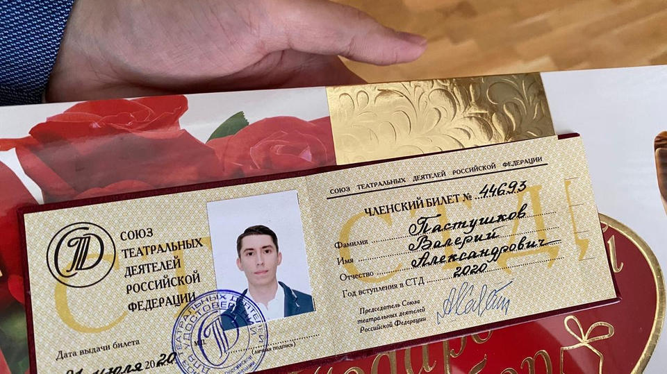 Артисту группы «Калейдоскоп» Валерию Пастушкову вручили членский билет Союза театральных деятелей России.