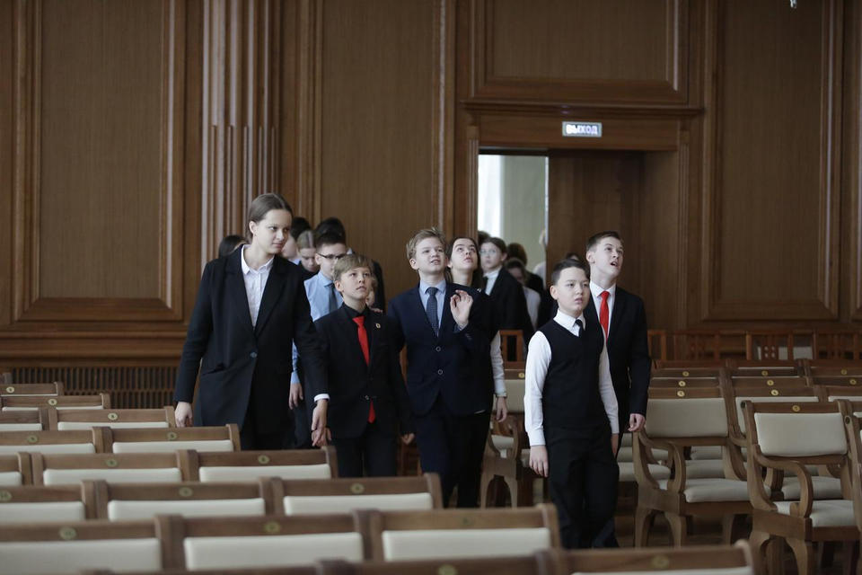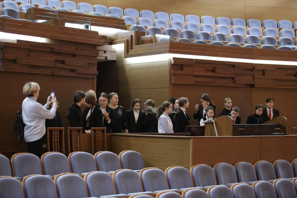 Ребята прошлись по самому зданию, узнали интересные факты о его архитектуре и дизайне.