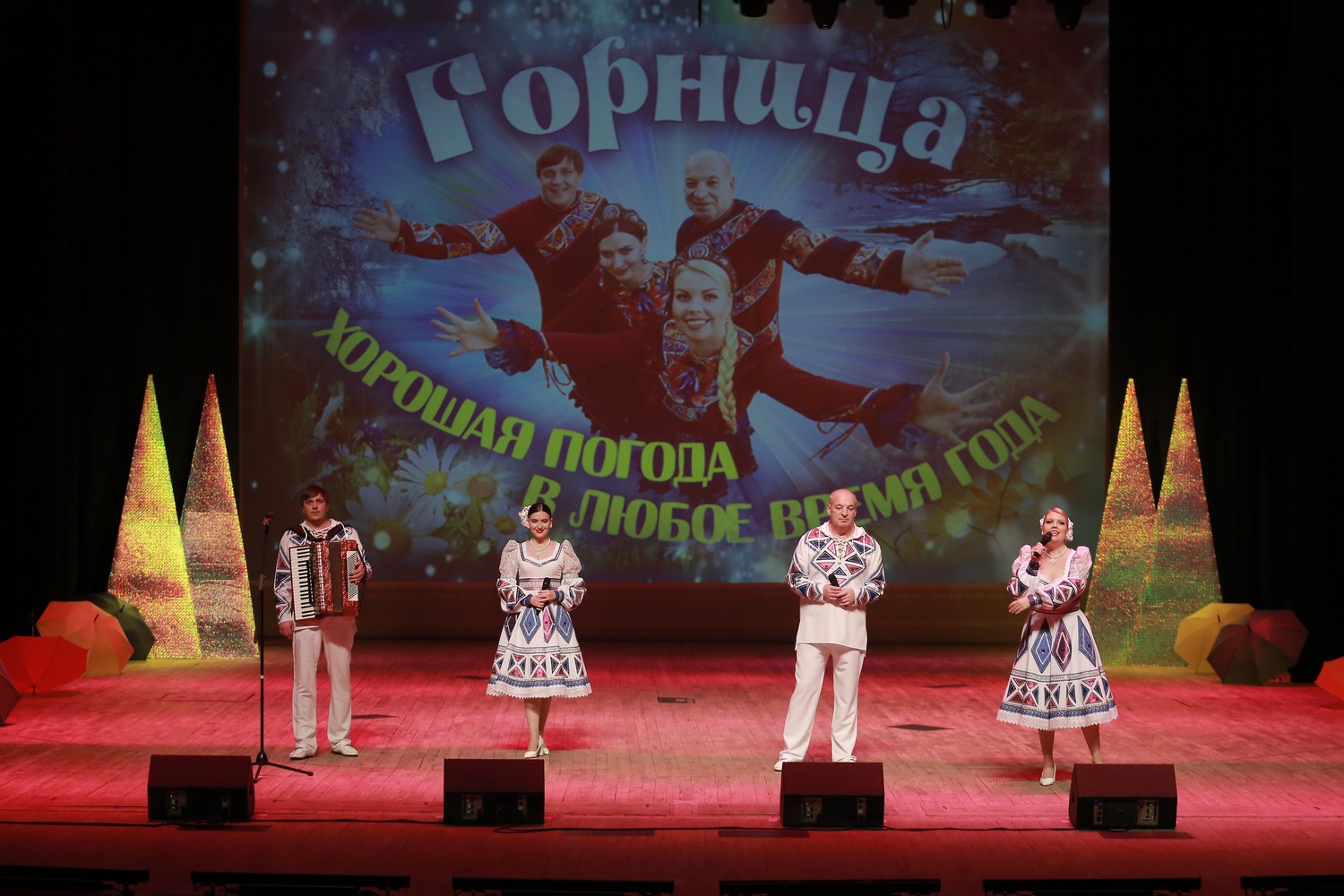 Звонкая весенняя капель, яркое летнее солнце, золотая теплая осень и задорная зимушка-зима — все четыре времени года в одном сольном концерте охватил ансамбль «Горница».