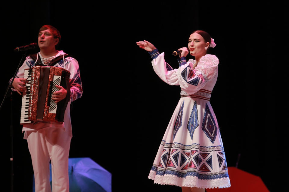 Приятным подарком для зрителей стали гости концерта – ансамбль бального танца «Сурские ритмы» (рук. Елена Ащина) и балалаечник–виртуоз Иван Нивин.