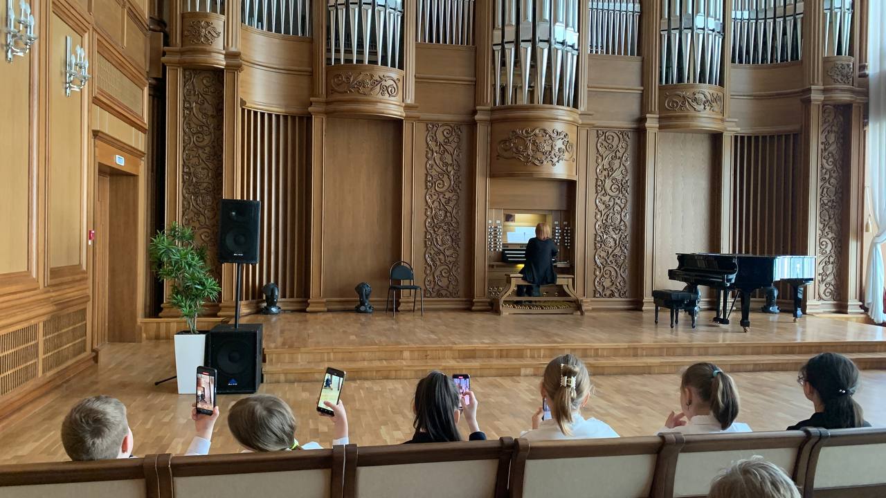 Затем в органном зале услышали историю «рождения» пензенского органа, узнали о его технических характеристиках и особенностях.