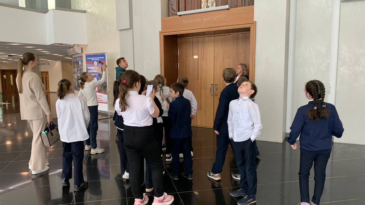 В рамках экскурсионного маршрута ребята побывали в просторных фойе филармонии, Большом концертном зале, узнали интересные факты об архитектурных особенностях здания и его внутренней отделки, поднялись на сцену и побывали за кулисами.