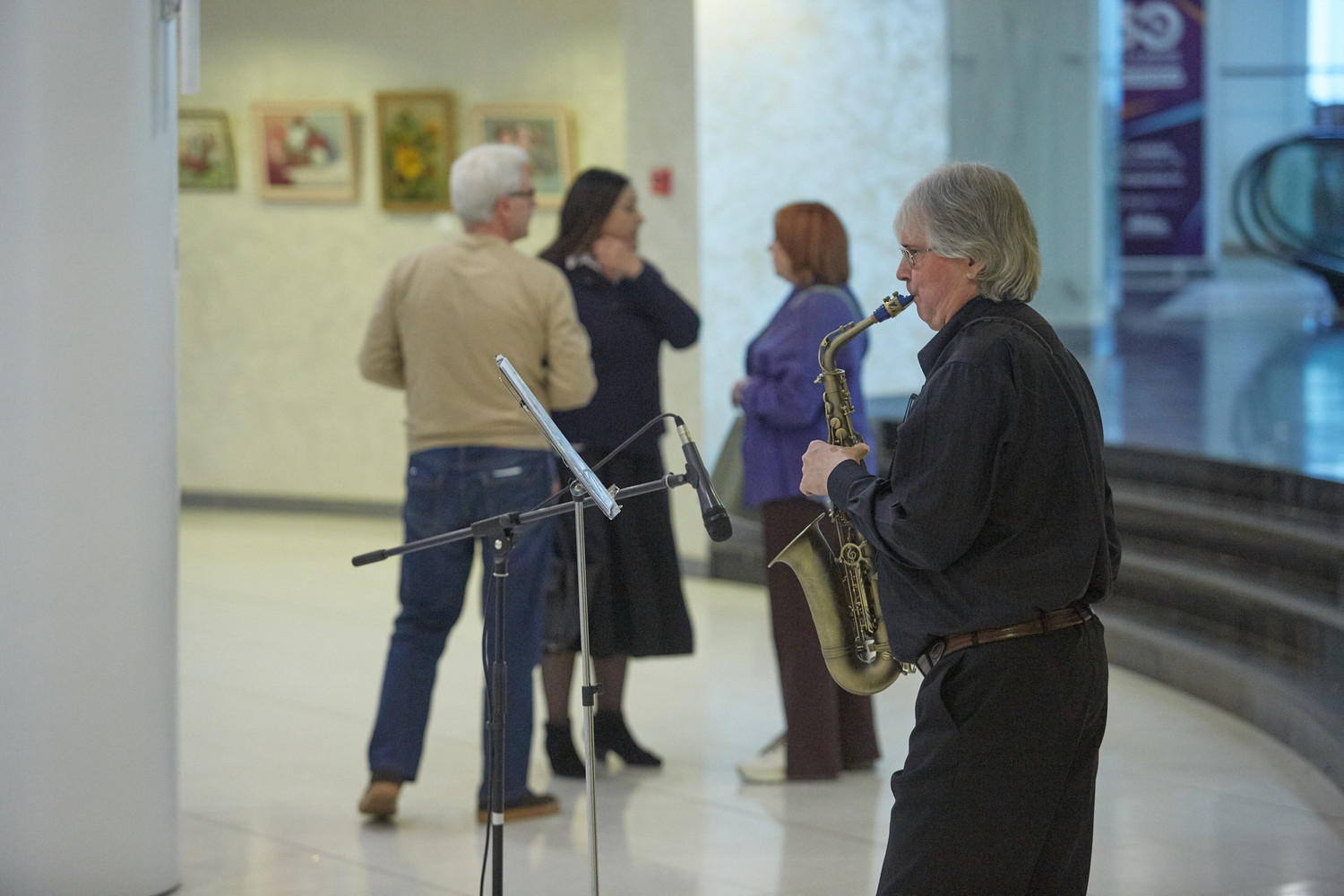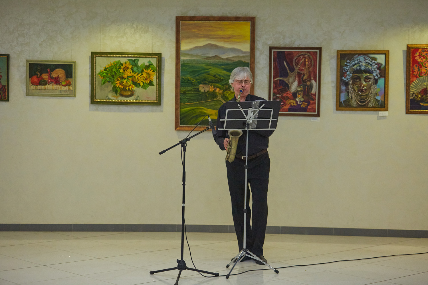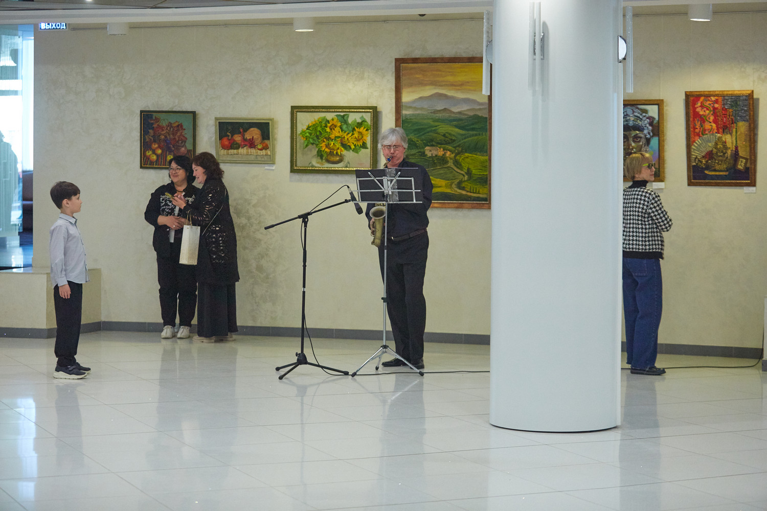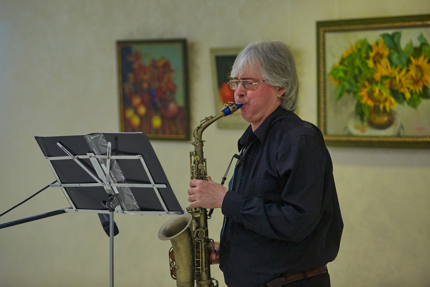 Музыкальное оформление мероприятию создавал артист эстрадно-джазового ансамбля «Экспресс-бэнд» Дмитрий Киселев (саксофон).