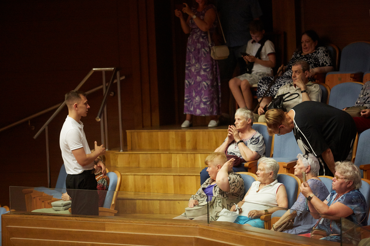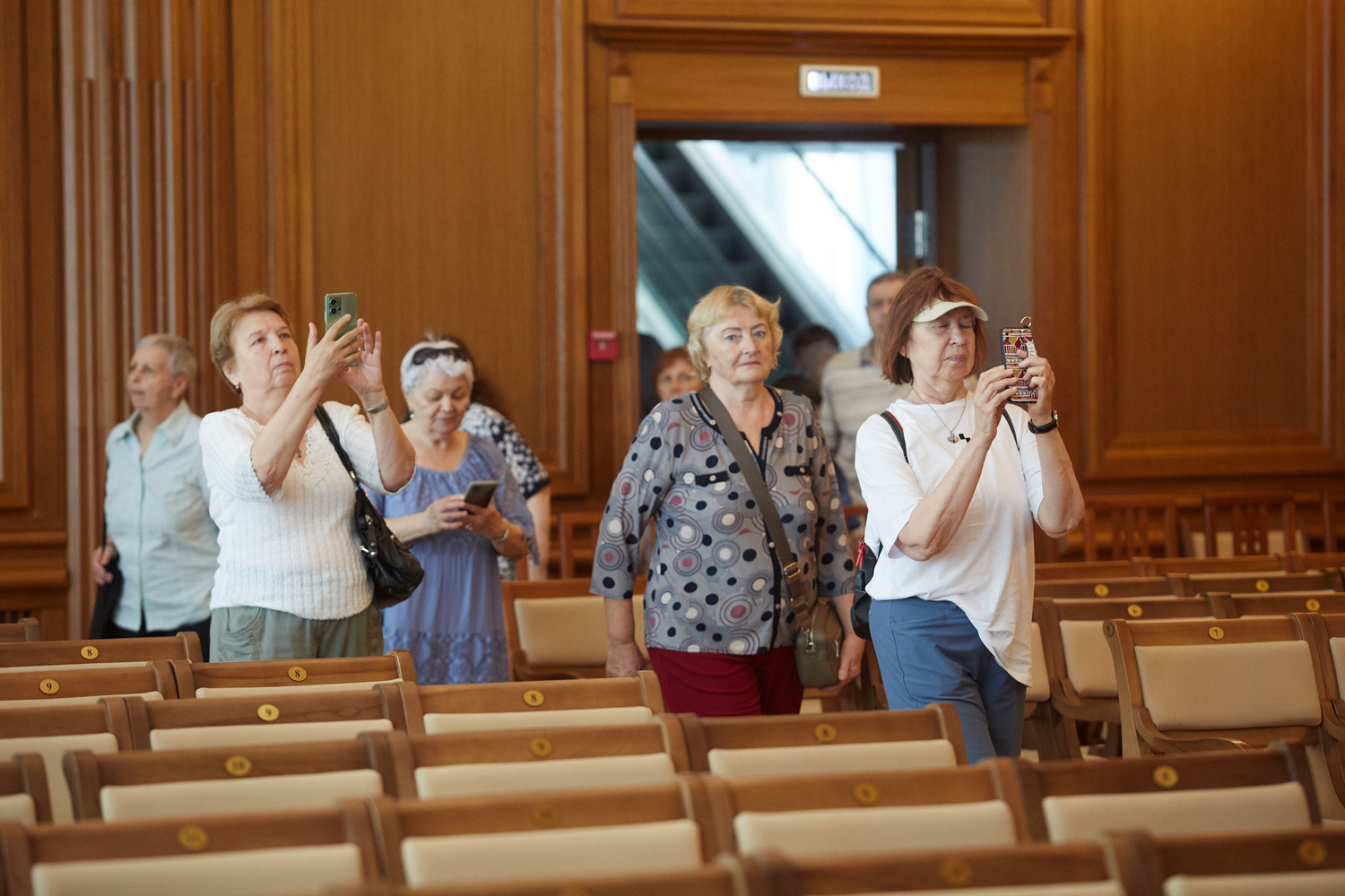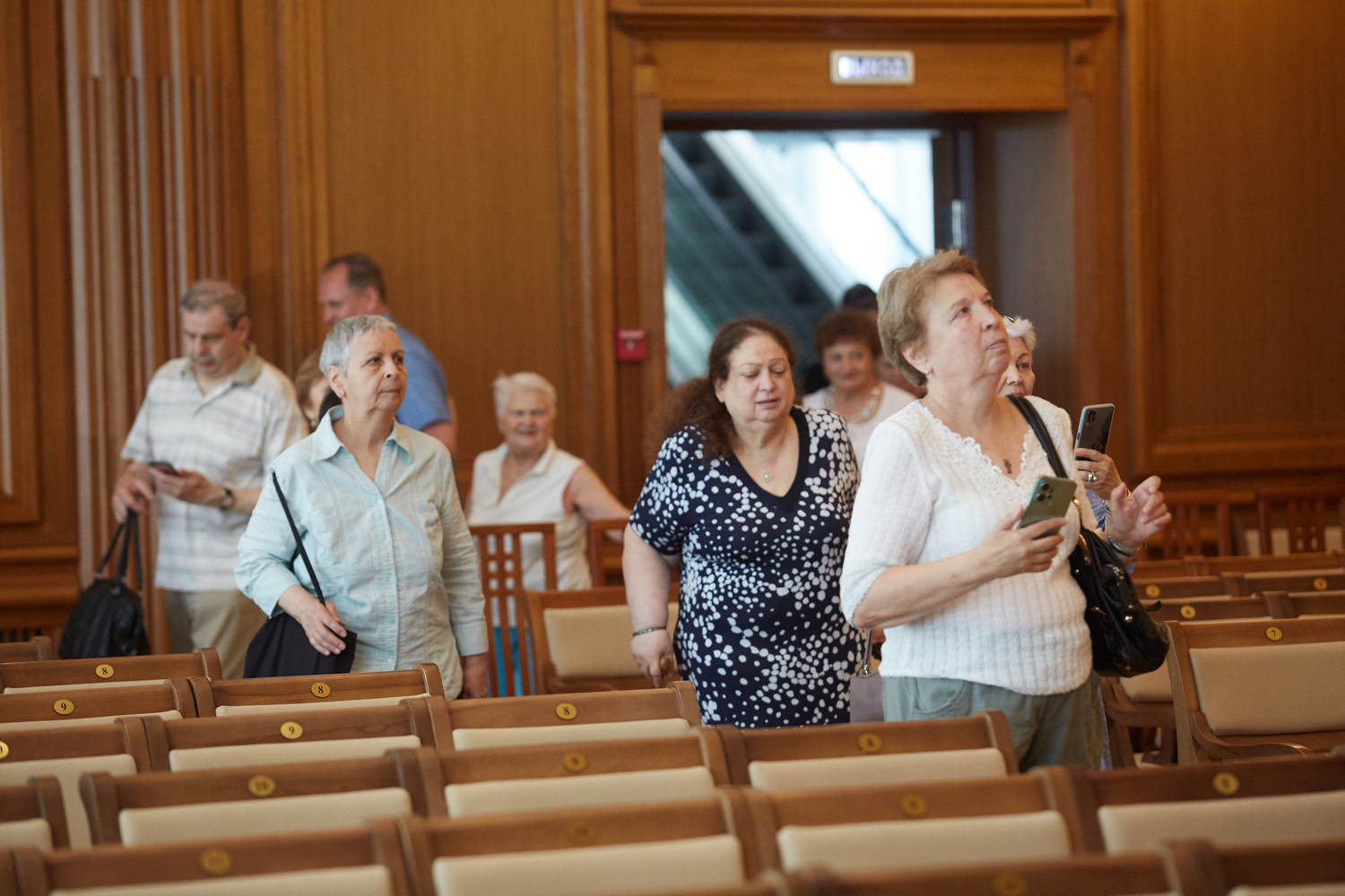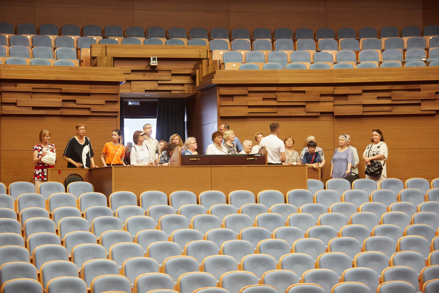 В рамках экскурсионного маршрута гости посетили концертные залы филармонии, узнали много фактов об архитектурных особенностях здания и его внутренней отделки, поднялись на сцену и сделали фото на память.