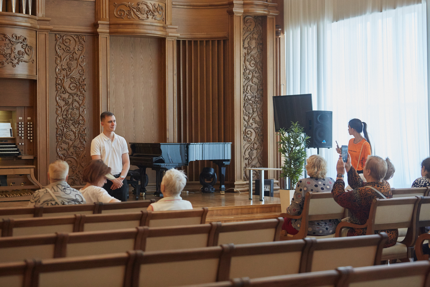 Завершился экскурсионный маршрут в Органном зале, где услышали историю создания пензенского органа, узнали о его технических характеристиках и особенностях, а затем прозвучала концертная программа органной музыки в исполнении солистки «Пензаконцерта» Софьи Семьяновой.