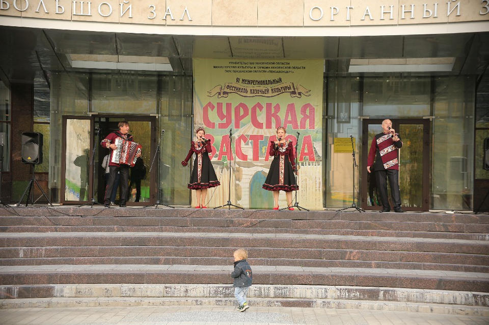 «Сурская застава» состоялся на главном входе в филармонию 16 сентября. Большому фестивальному концерту предшествовал парад участников песенного марафона. В мероприятии приняли участие коллективы из Саранска,  Малой Сердобы, Лунинского района и, конечно, из Пензы: народный фольклорный ансамбль «Казачка» МУК МЦ РДК Лунинского района с.Казачья Пелетьма, хор отделения этно-художественного творчества ГБПОУ «Пензенского колледжа искусств»,
