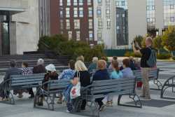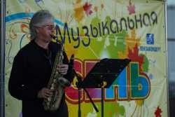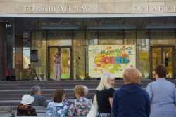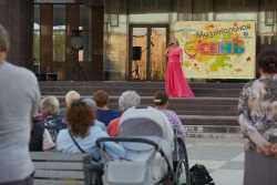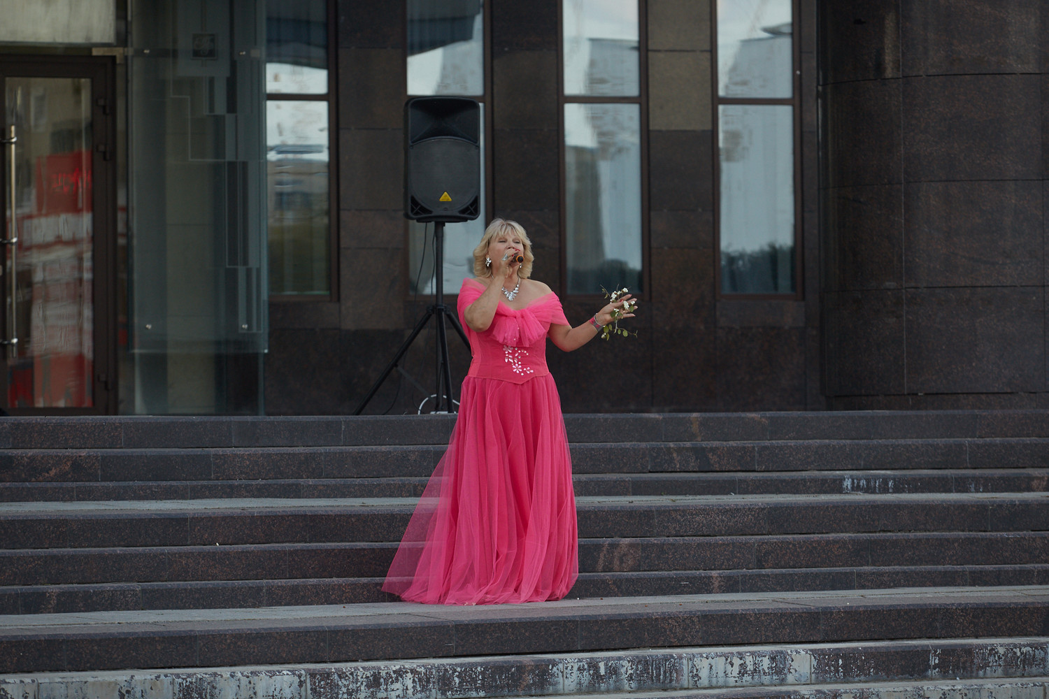 Сегодня возле центрального входа в здание филармонии состоялось выступление заслуженной артистки РФ Елены Сафроновой и музыканта эстрадно-джазового ансамбля «Экспресс-бэнд» Дмитрия Киселёва (саксофон).