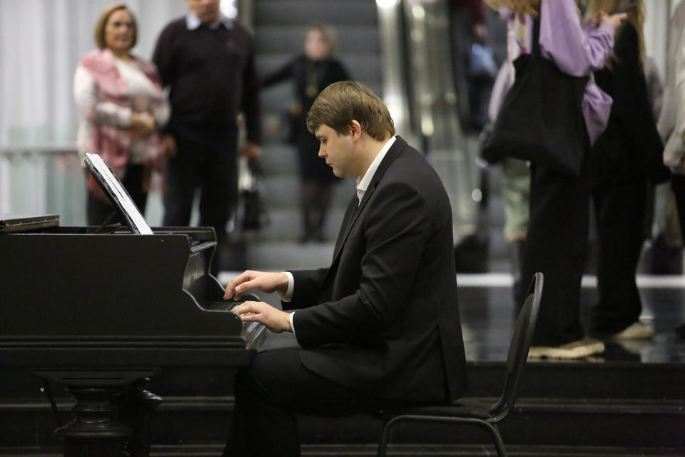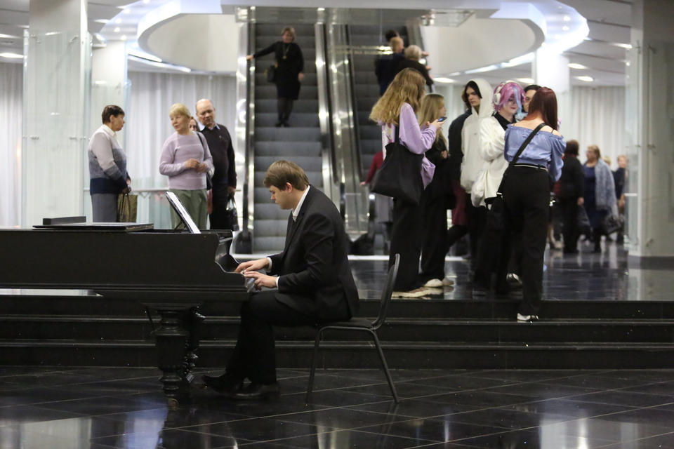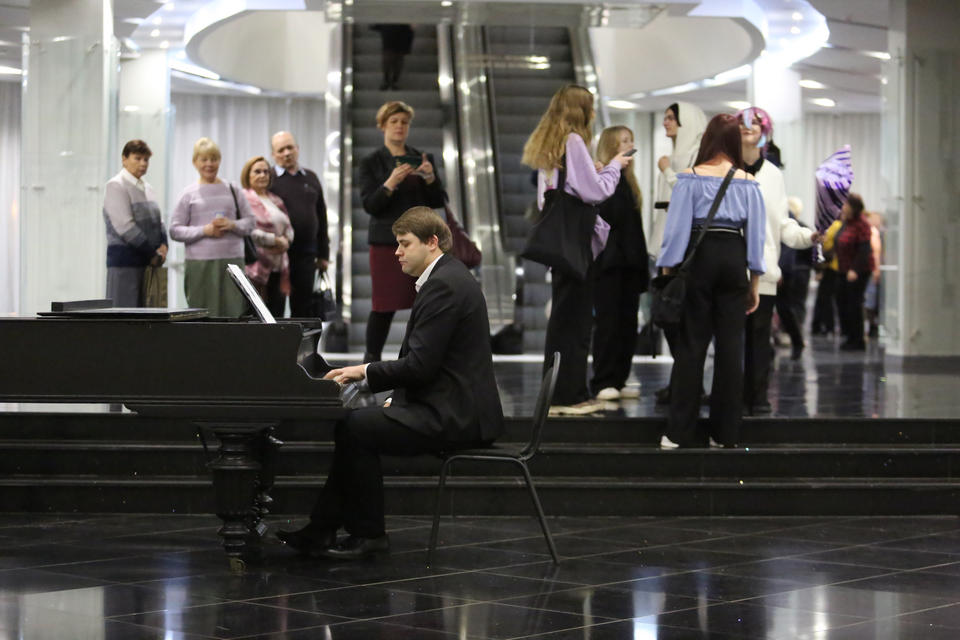 Перед началом концерта в фойе филармонии гостей вечера музыкальной программой встречал солист «Пензаконцерта» Александр Губарьков (фортепиано).
