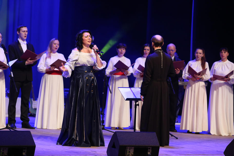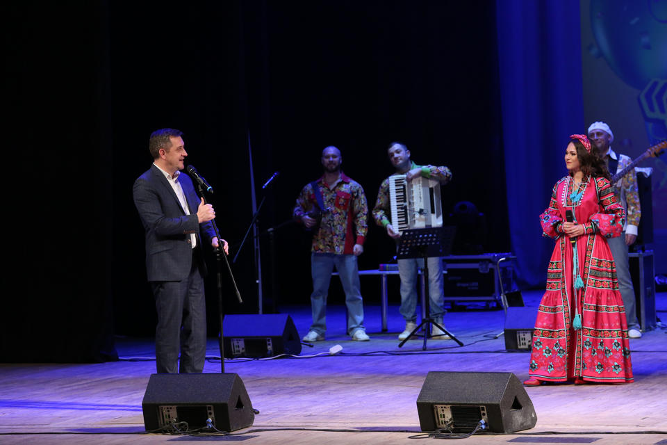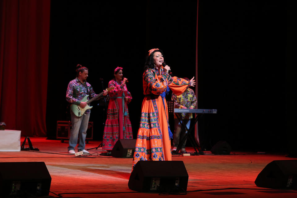 После исполнения первой песни к зрителям обратилась художественный руководитель ансамбля заслуженный работник культуры Пензенской области Наталья Мещерякова, она поблагодарила зрителей за их любовь и поддержку: