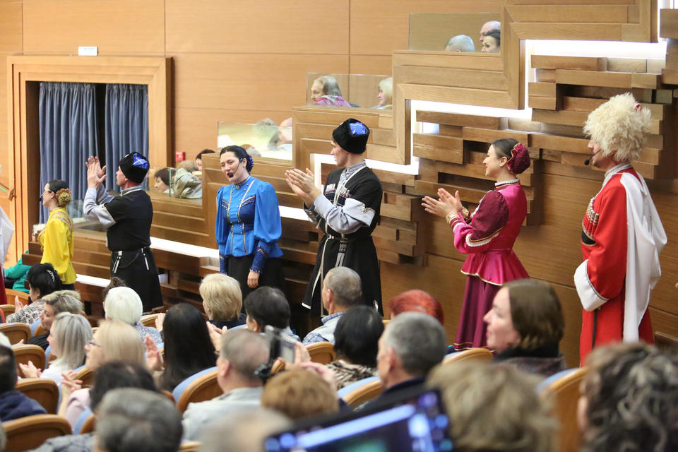 — Вы — наша дружная большая музыкальная семья. Мы дорожим вами, мы любим и ценим вас. День рождения — это всегда праздник, добрые, теплые слова, это много гостей, сюрпризы, ваши улыбки, аплодисменты и, конечно же, подарки! И сегодня мы будем дарить вам музыкальные подарки!