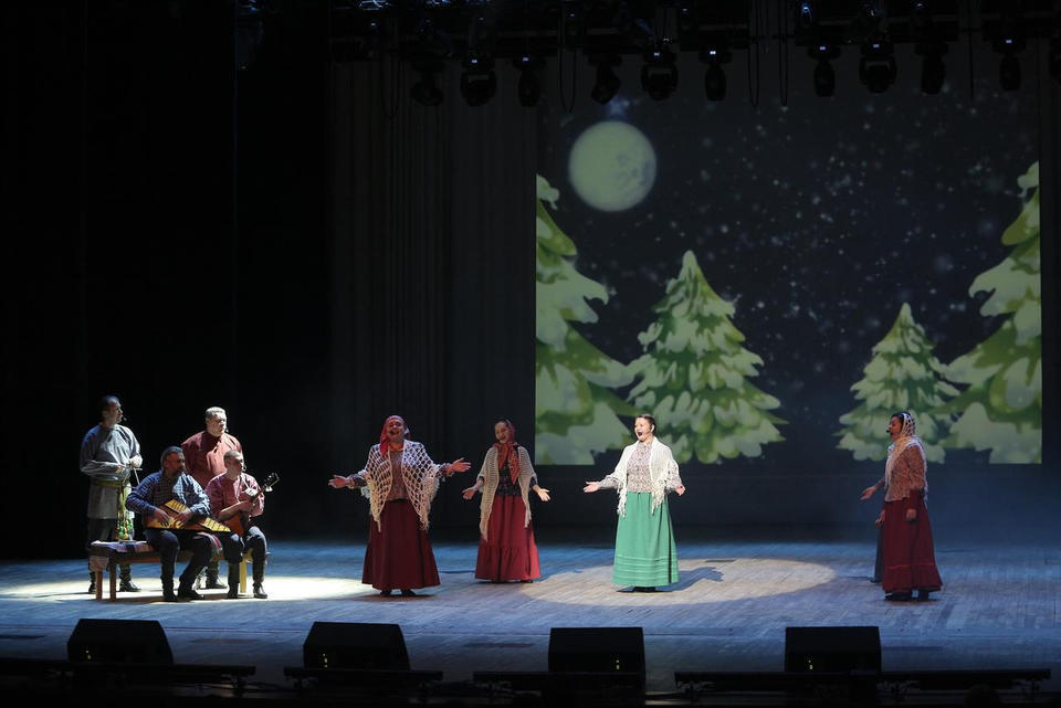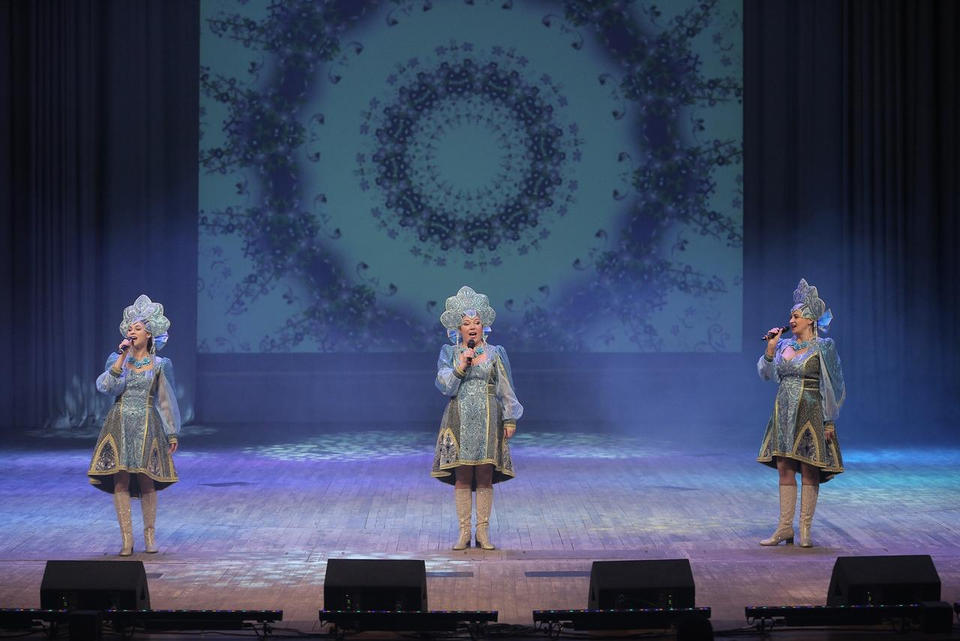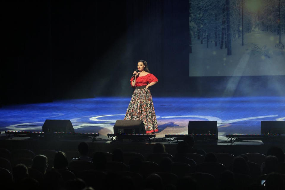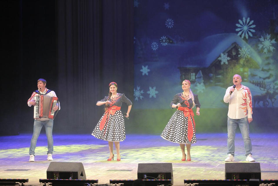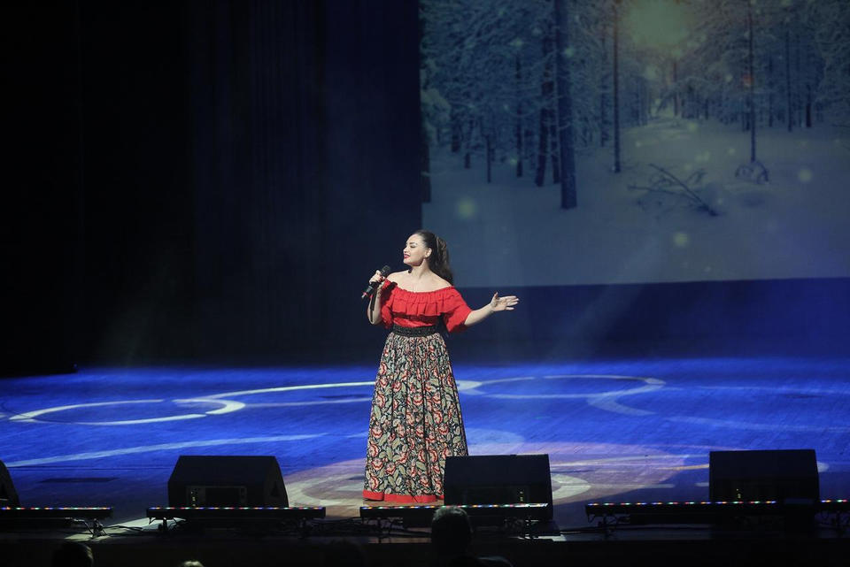 В исполнении артистов прозвучали такие популярные песни, как «Ой, мороз, мороз», «Метелица», «В лунном сиянии», «Валенки», «Потолок ледяной», «Волшебный Новый Год» и другие.