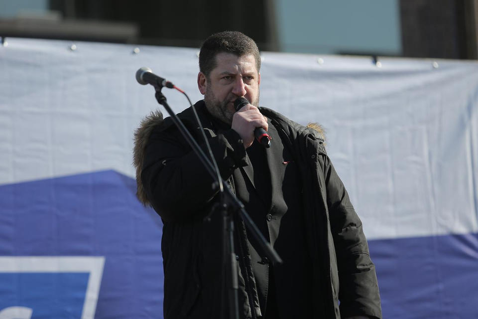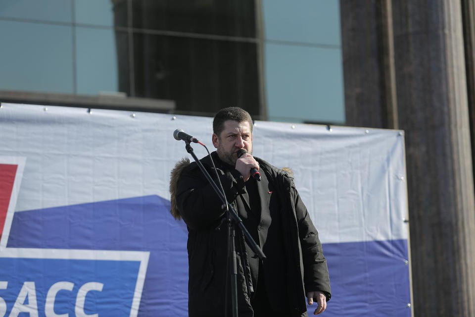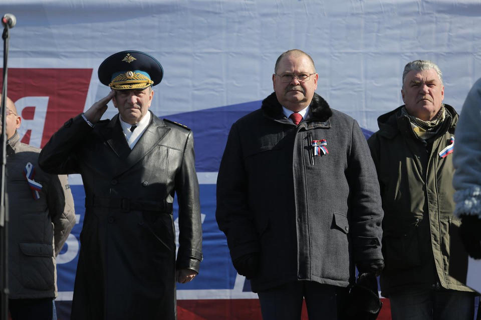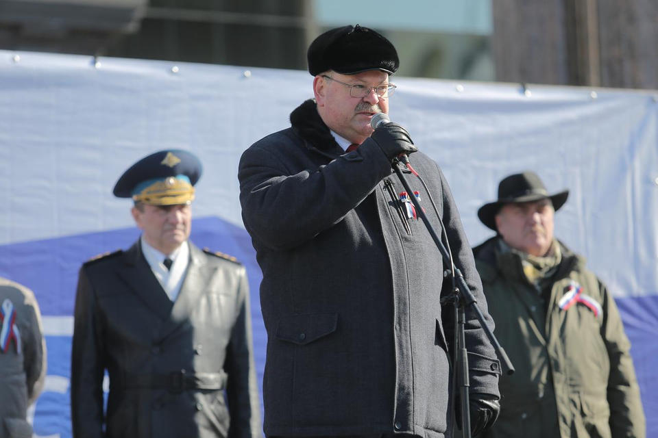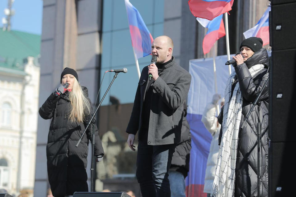 В завершении митинга для его участников выступил приглашённый артист – российский оперный певец Олег Диденко.