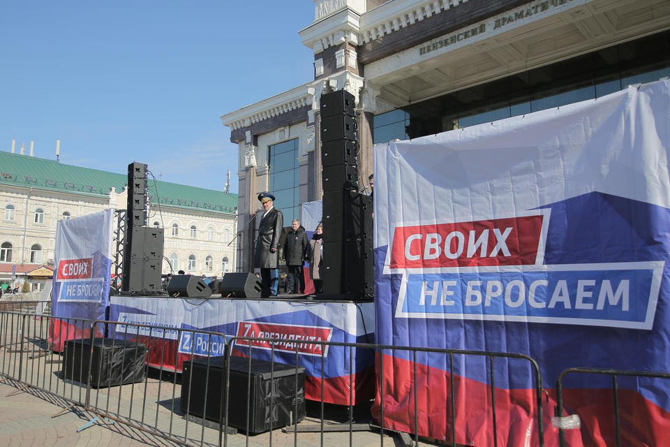 Торжественный митинг, посвящённый 8-ой годовщине воссоединения Крыма с Россией, состоялся 18 марта на Театральной площади города Пензы. Открылся он выступлением артистов «Пензаконцерта». Музыкальный подарок пензенцам преподнесли солист Губернаторской симфонической капеллы Сергей Князев и солистки эстрадно-джазового ансамбля «Экспресс-бэнд» Светлана Бисяева и Анастасия Воробьёва.