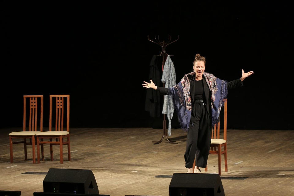 Известная российская поэтесса Ирина Астахова выступила 18 апреля в «Пензаконцерте». В Большом зале филармонии она представила моноспектакль «Без грима».