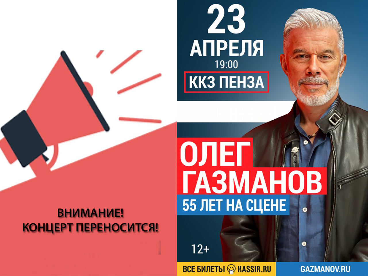 Уважаемые зрители! Концерт Олега Газманова, который был запланирован на 23 апреля 2024 г. переносится на 26 сентября 2024 г.