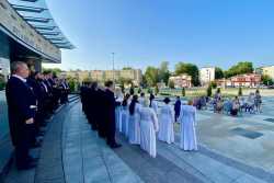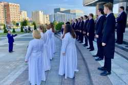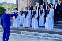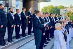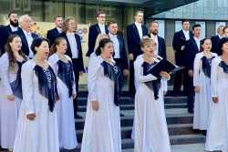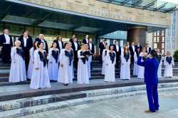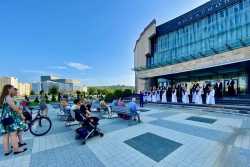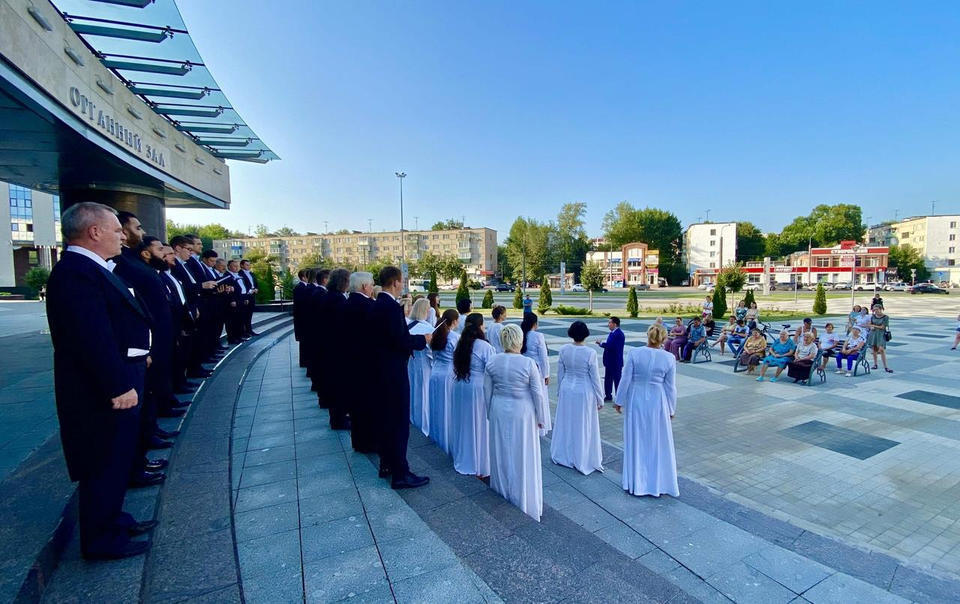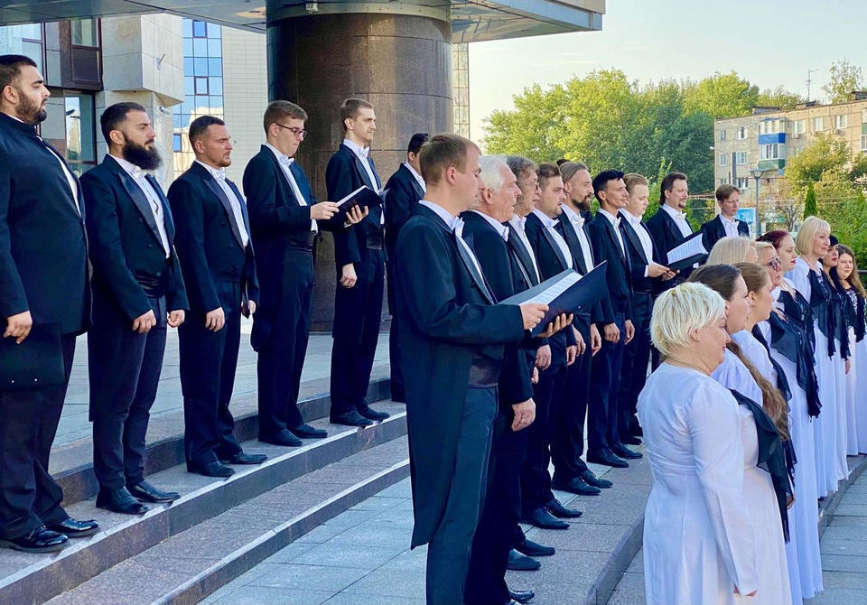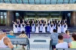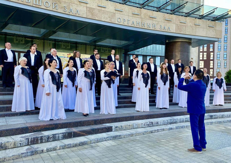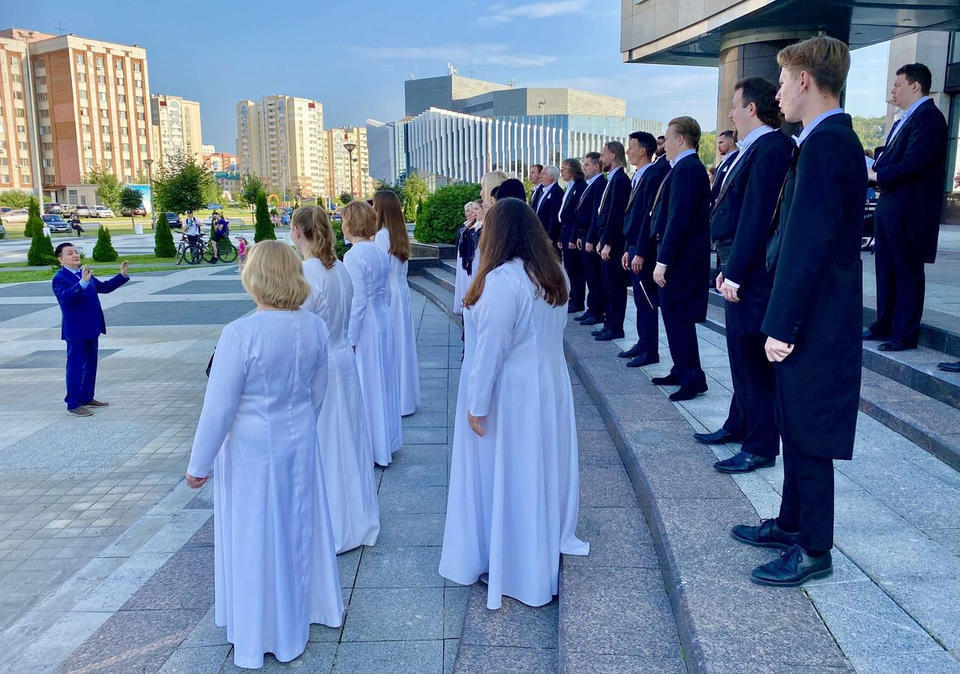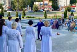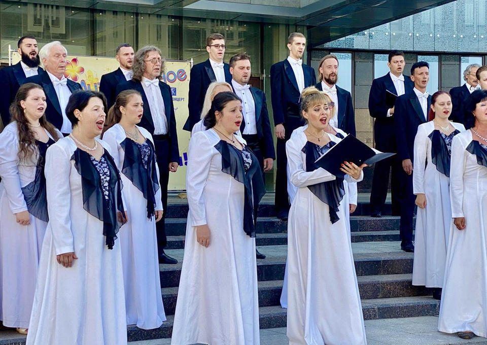 18 августа на площади возле центрального входа в здание филармонии выступил академический хор Губернаторской симфонической капеллы п/у Заслуженного деятеля искусств России Владимира Каширского.