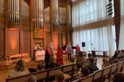 Музыкально-просветительская программа посвящена истории возникновения русских народных инструментов. Гармошка, балалайка, дудочка, бубен, ложки – об этих и других музыкальных инструментах «Миряне» рассказали юным зрителям и продемонстрировали их звучание.