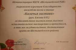В исполнении артистов жители Шемышейского района увидели яркие танцевально-песенные композиции, повествующие о славных страницах истории русского казачества, о богатой и мощной культуре казаков, о силе их духа и благородстве, о любви к своей Родине.