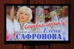 В исполнении Елены Сафроновой зрители услышали популярные и любимые хиты отечественной эстрады: «Старый клён», «Одинокая гармонь», «Московские окна», «Ночь светла», «А снег идёт», «Подмосковные вечера», «Есть только миг» и другие.
