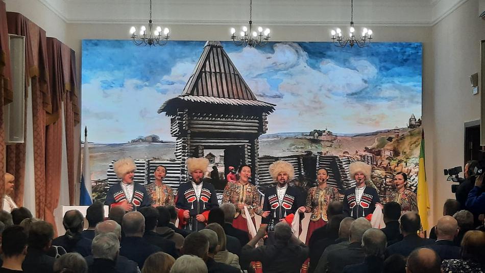 Артисты ансамбля песни и танца «Казачья застава» преподнесли гостям презентации творческий подарок — коллектив выступил с музыкальным номером.