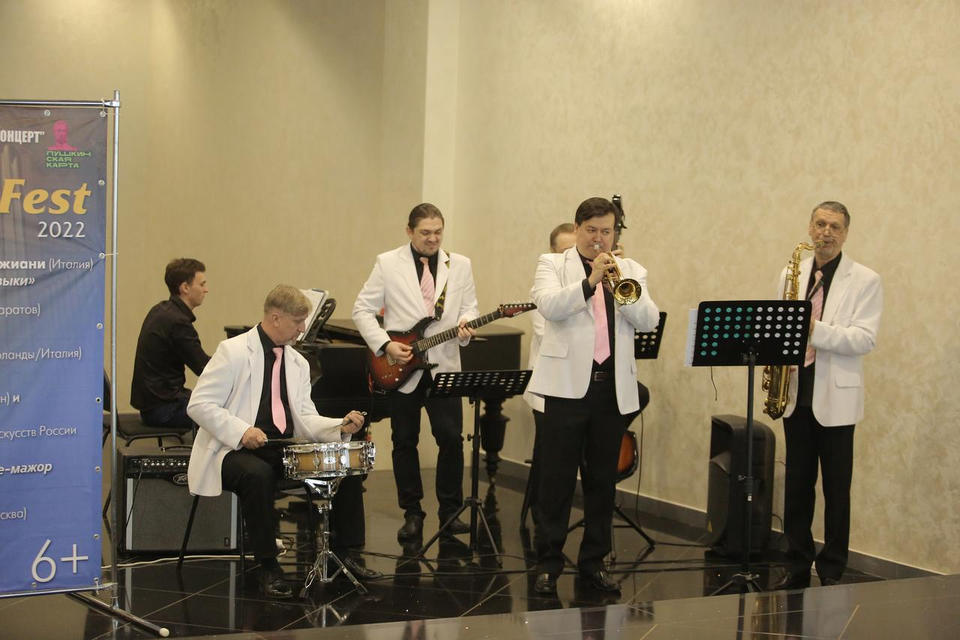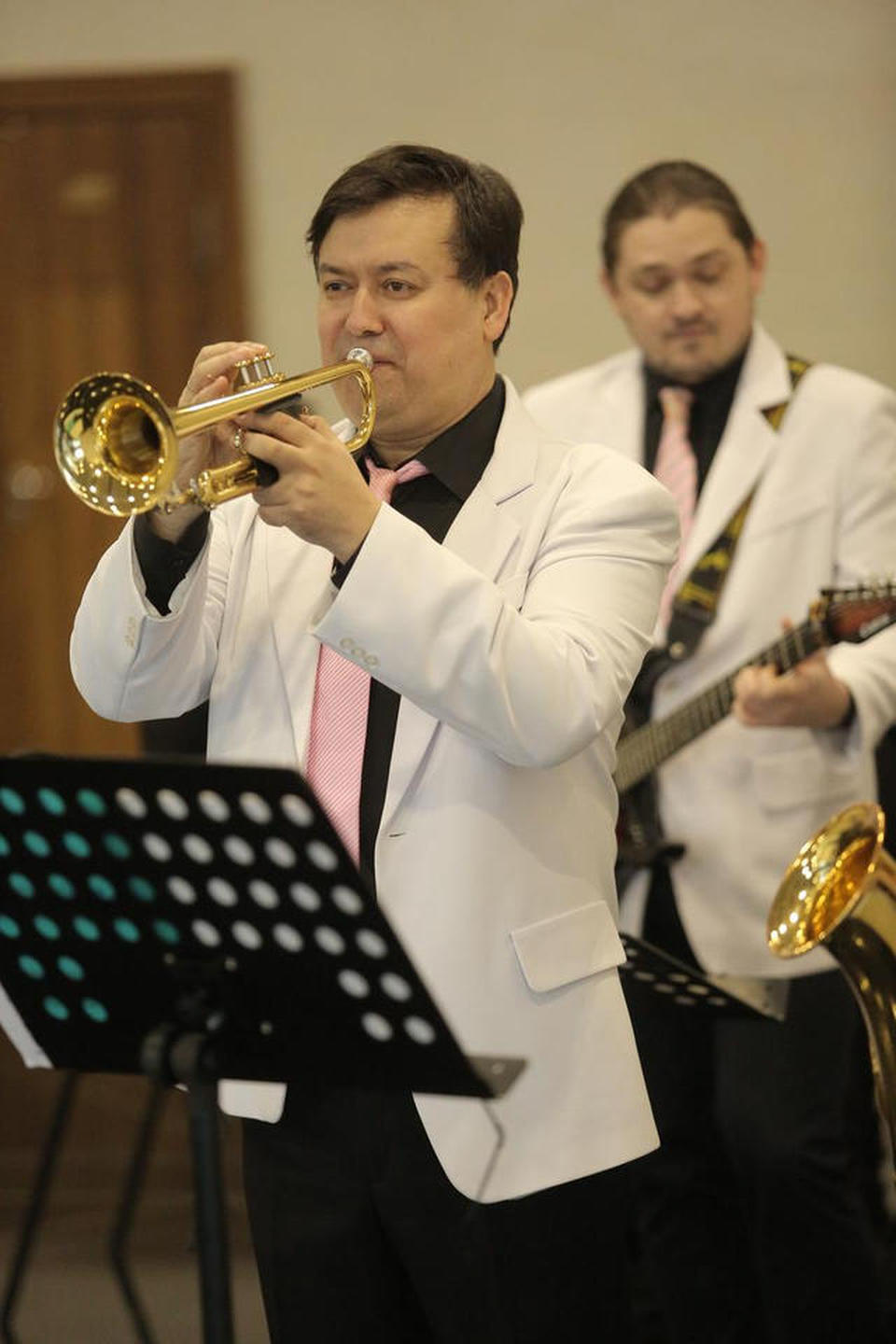 Перед концертом зрителей с программой «Добро пожаловать!» встречали музыканты эстрадно-джазового ансамбля «Экспресс-бэнд» п/у Юрия Белоногова.