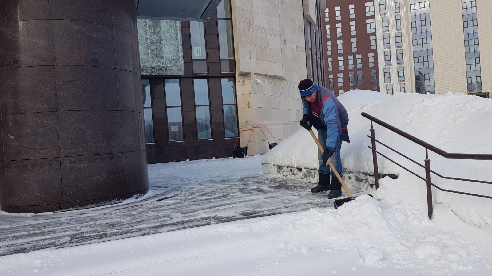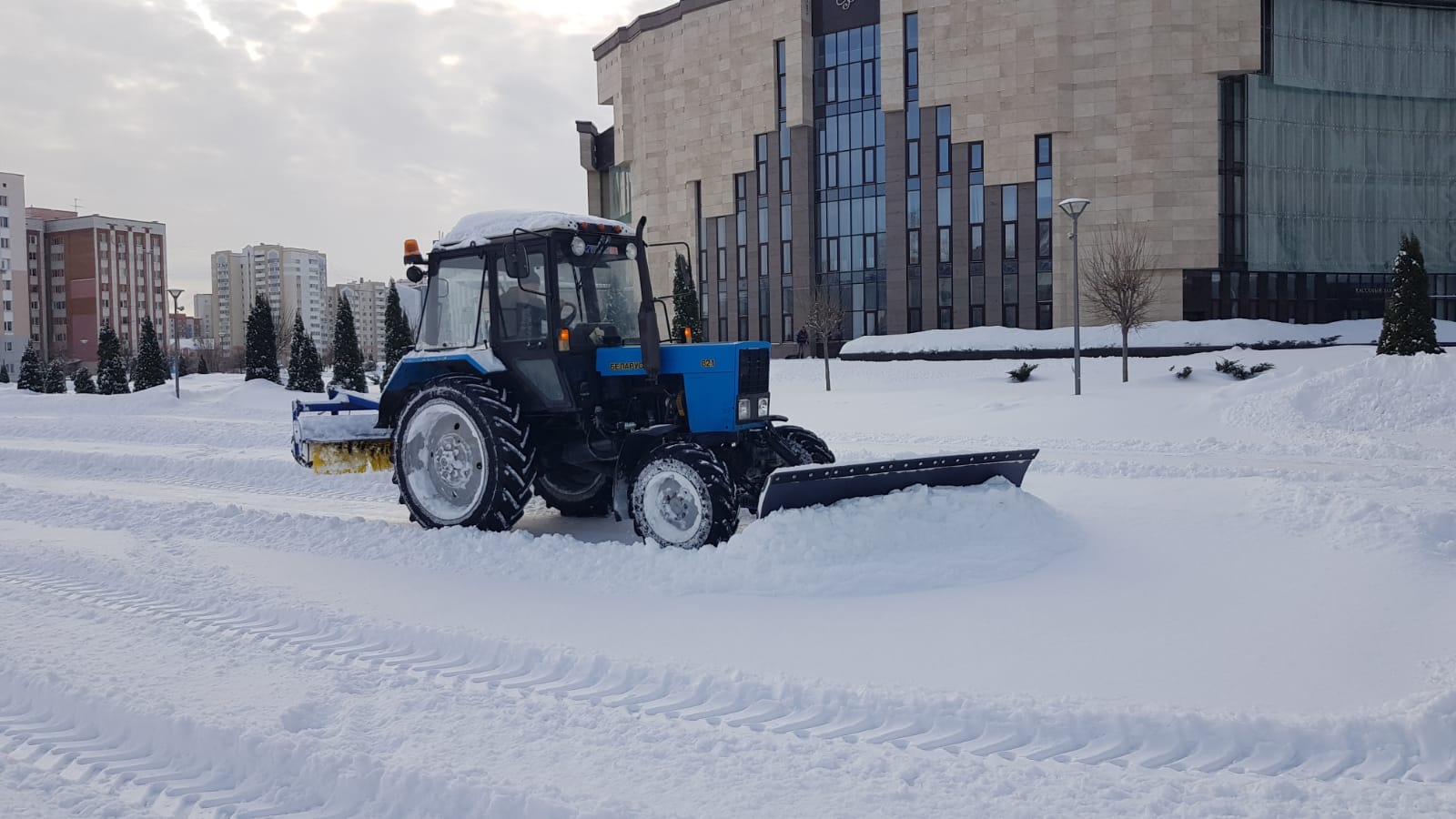 Для расчистки территории используется как подручный инвентарь, так и спецтехника.