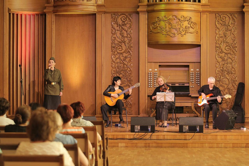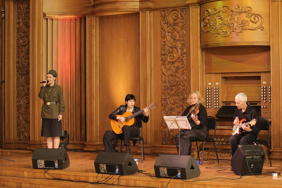 В исполнении артистов зрители услышали известные русские романсы и инструментальные композиции, а также хиты зарубежной эстрады: «Ромашки спрятались», «Дорогой длинною», «У самовара», «Hello, Dolly!» и другие.