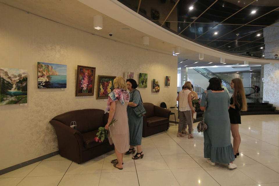 Прекрасные пейзажи и натюрморты украсили фойе первого этажа здания филармонии.