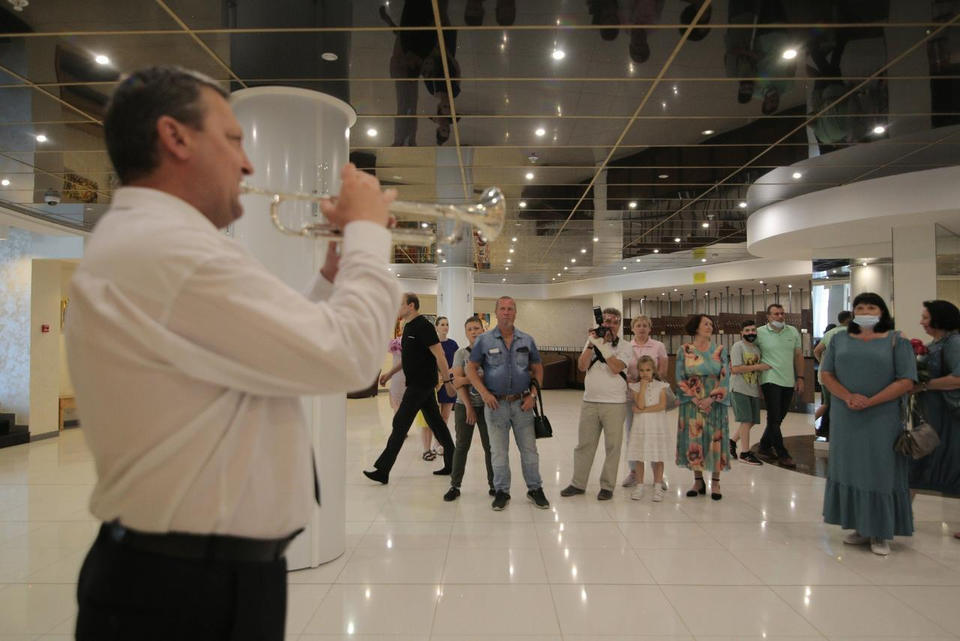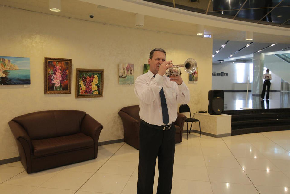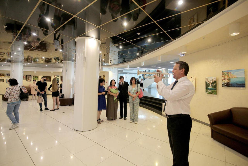 Музыкальный подарок гостям выставки преподнёс артист ансамбля песни и танца «Казачья застава» Александр Мереняшев (труба).