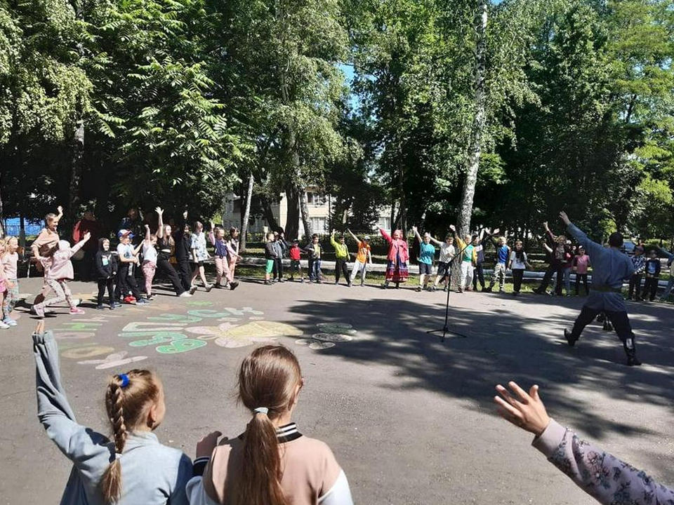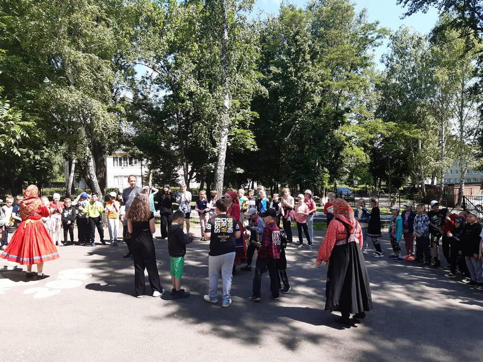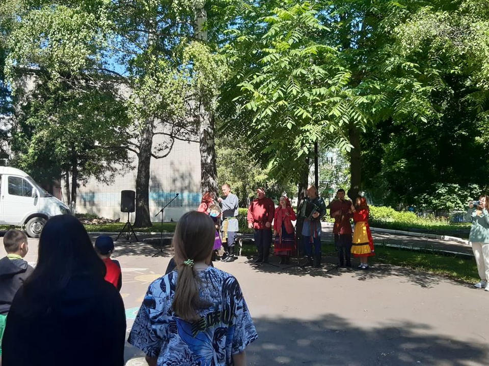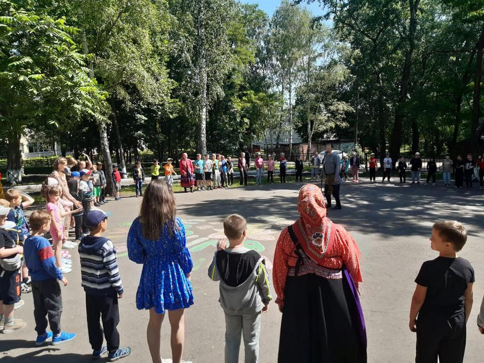 «Миряне» исполнили для юных зрителей, посещающих пришкольный лагерь, песни из своего богатого репертуара, разучили с ними русские народные танцы, а также рассказали о фольклоре родного края.