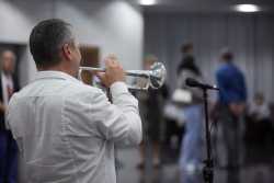 Перед началом концерта гостей встречал музыкант ансамбля песни и танца «Казачья застава» Александр Мереняшев (труба) с программой из цикла «Добро пожаловать!».