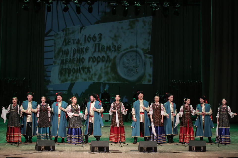 «Стоит тот город на холме, на реках Пензе и Суре...» – музыкально-театрализованную постановку под таким названием представил ансамбль песни и танца «Казачья застава» 19 ноября в Большом зале филармонии в рамках V Межрегионального фестиваля казачьей культуры «Сурская застава».