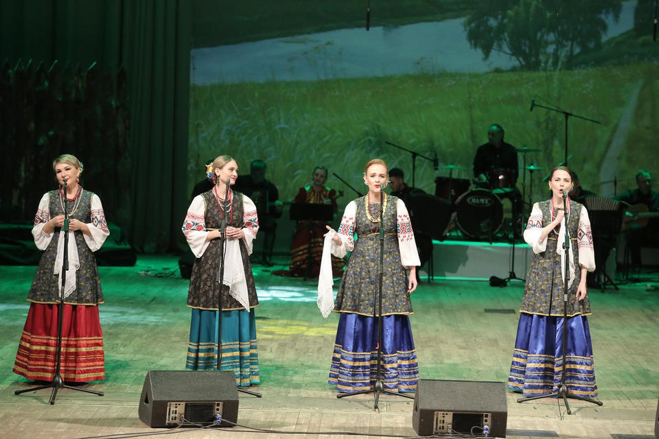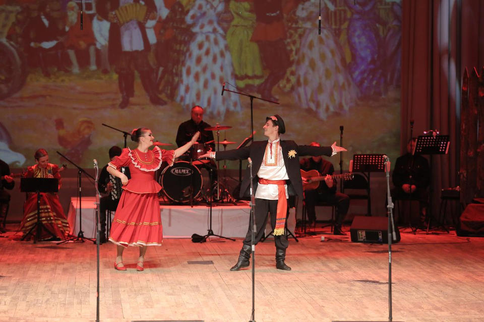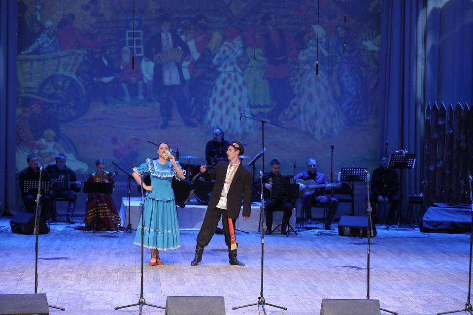 Перед концертом зрителей с программой «Добро пожаловать!» встречали артисты ансамбля «Вольница».
