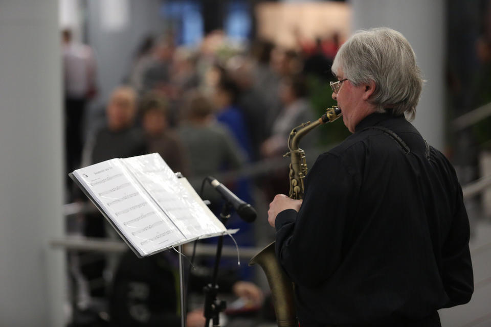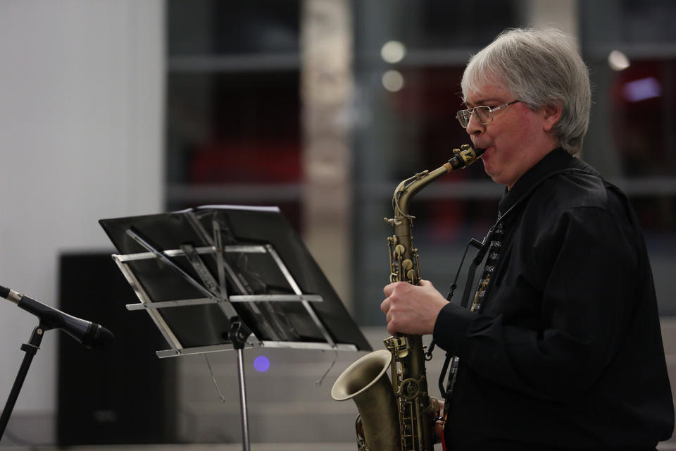 Перед началом концерта в фойе с концертной программой «Добро пожаловать» выступил солист эстрадно-джазового ансамбля «Экспресс-бэнд» Дмитрий Киселев (саксофон).