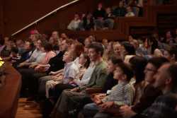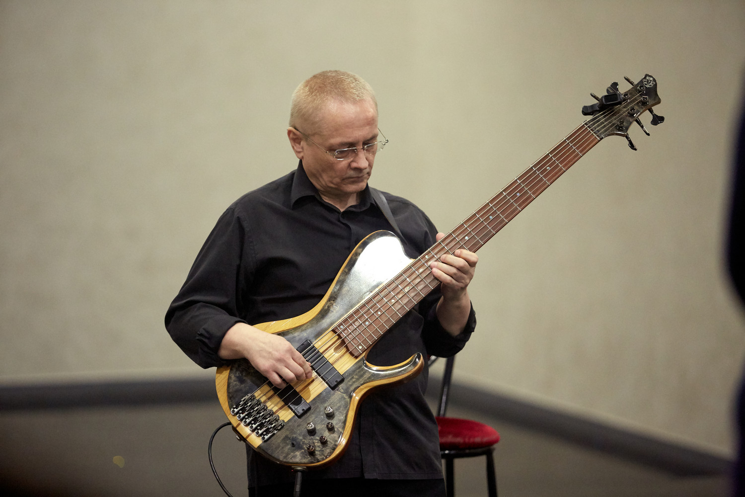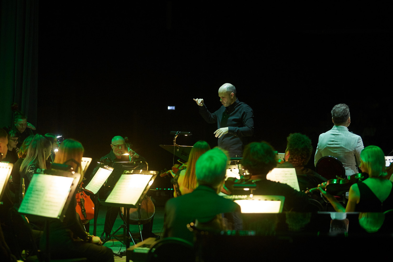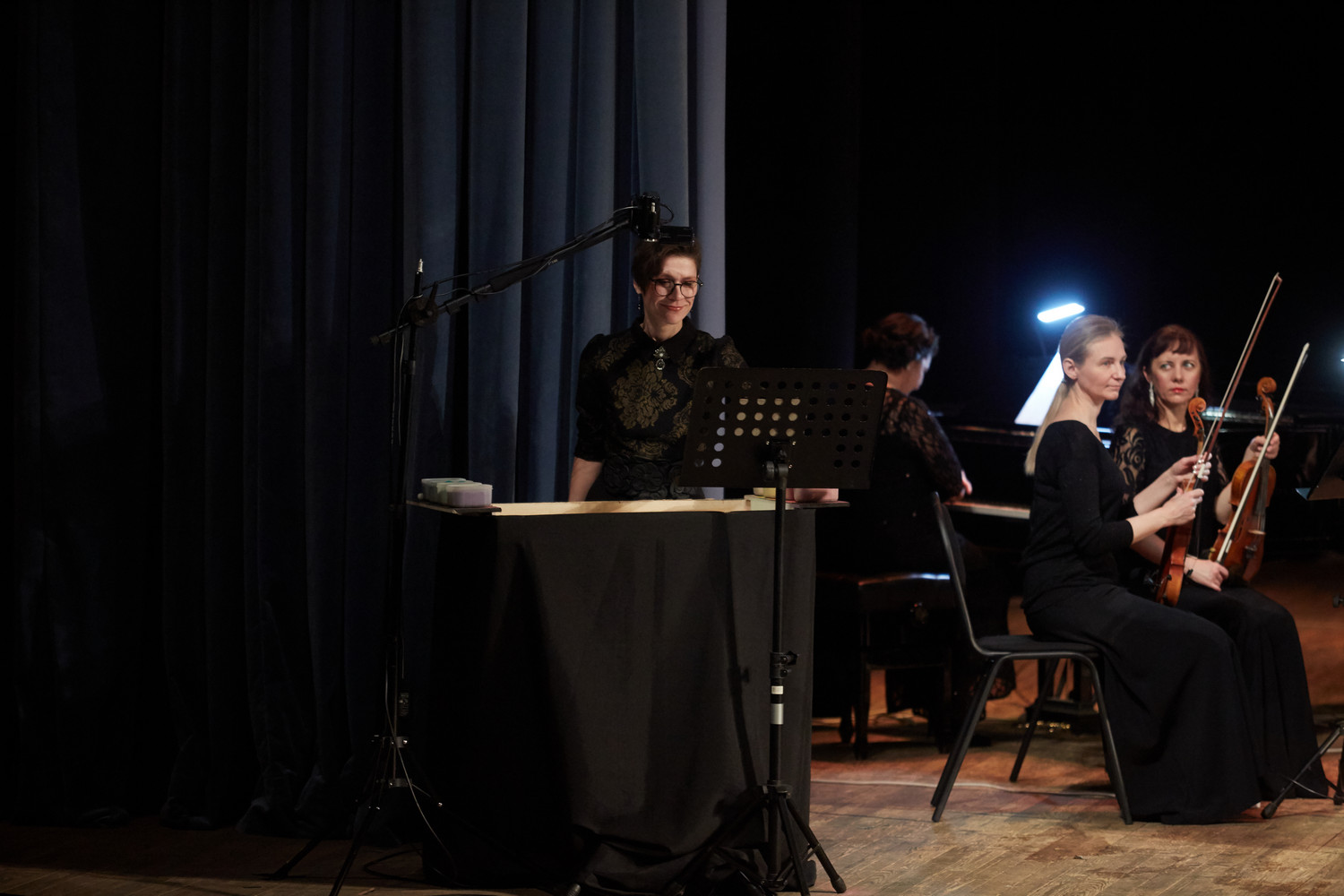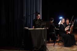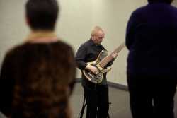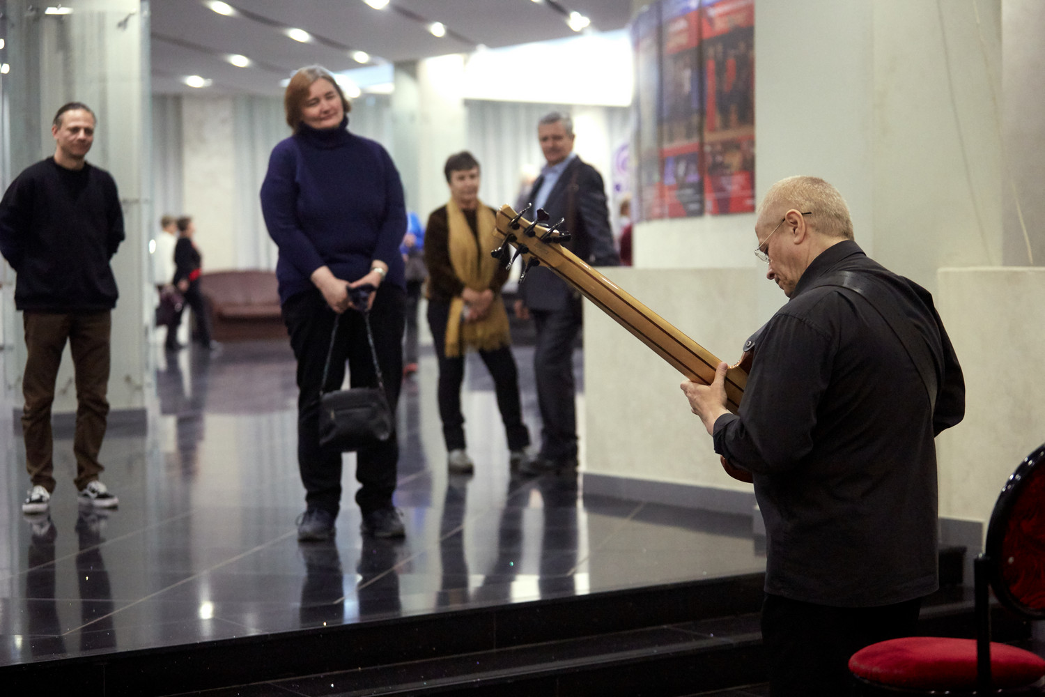 Перед концертом гостей в фойе встречал музыкант эстрадно-джазового ансамбля «Экспресс-бэнд» Владислав Иванашко (гитара) с музыкальной программой из цикла «Добро пожаловать!».