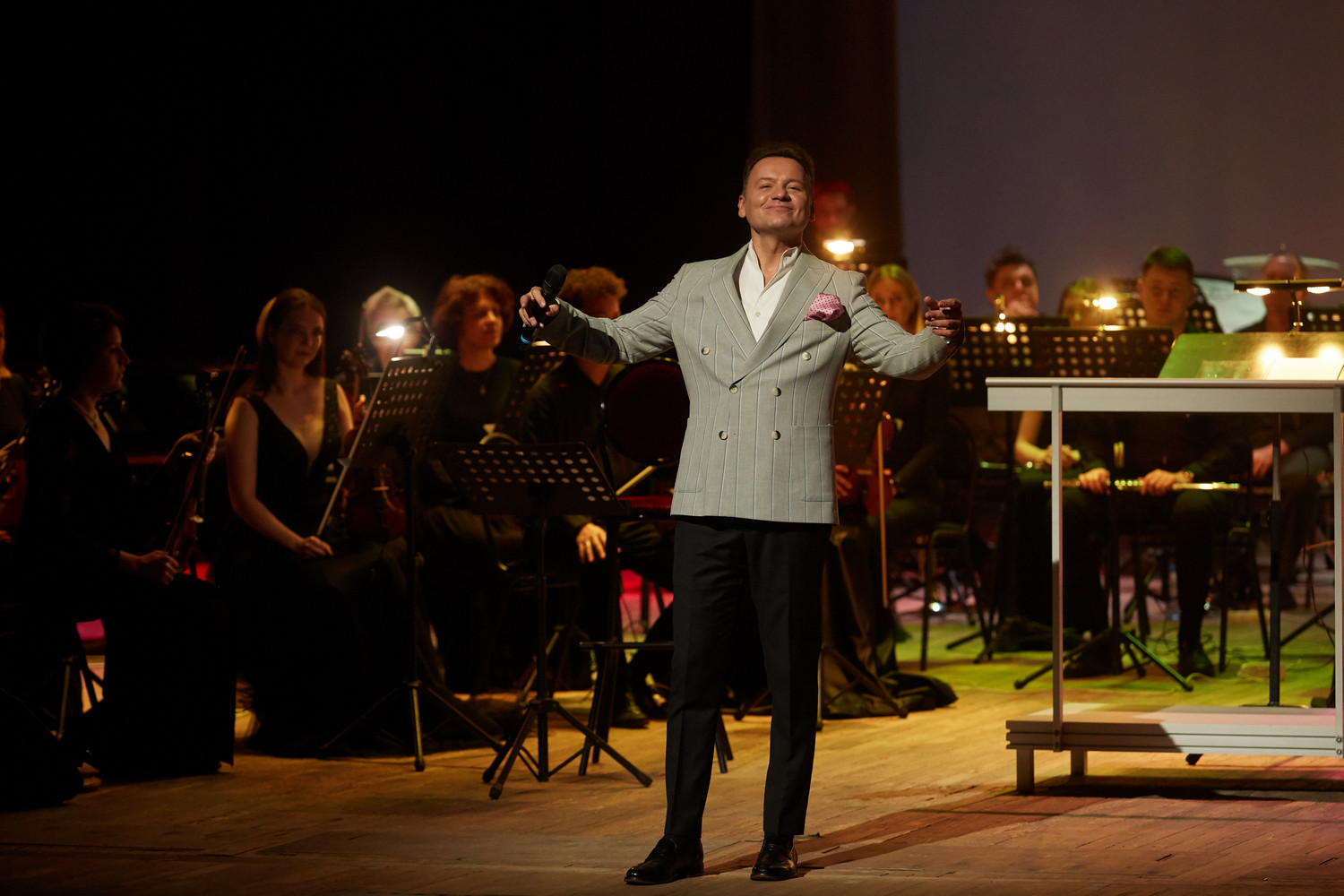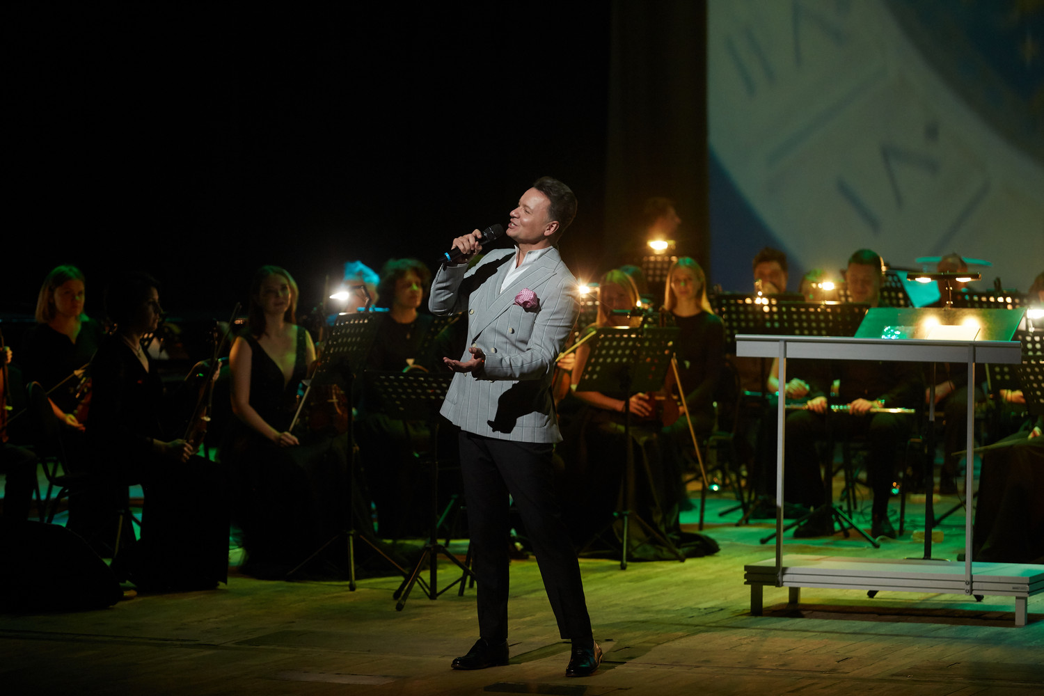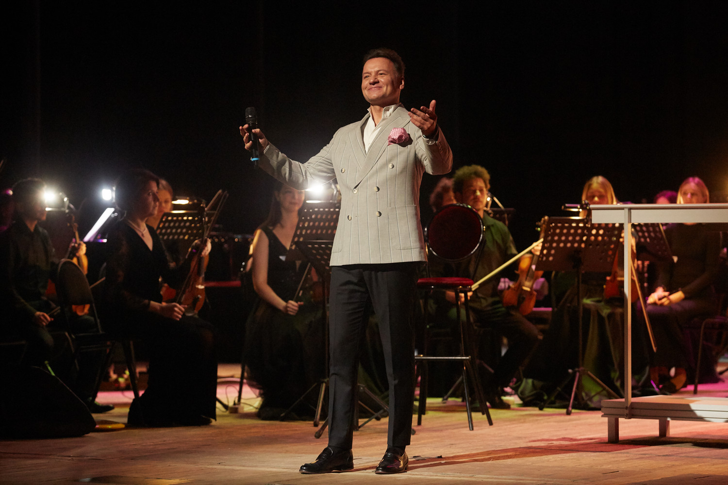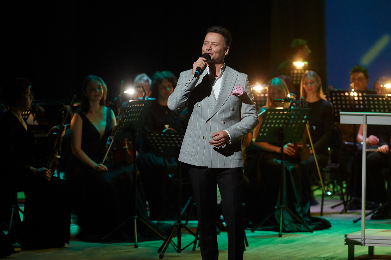 Вечером Александр Олешко выступил с семейным концертом «Негасимый свет». В исполнении заслуженного артиста России прозвучали известные и любимые советские и российские песни, песни из кинофильмов, а также он поделился со зрителями историями из творческой биографии.