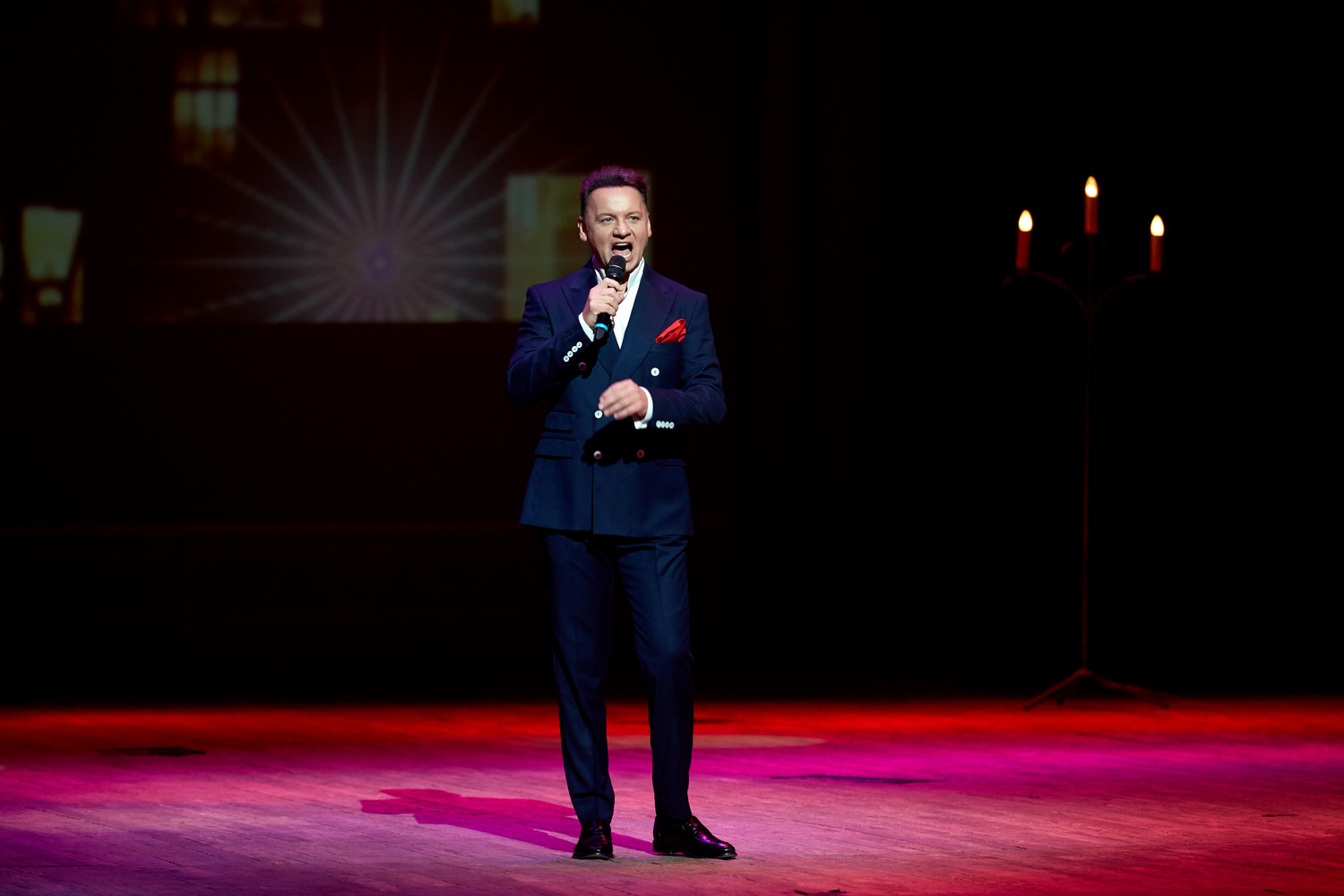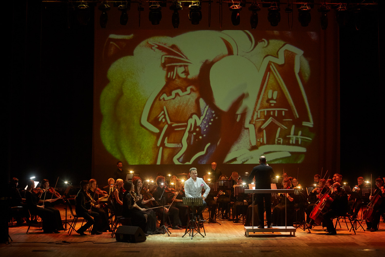 18 ноября в рамках социально-культурного, просветительского проекта «Встречи для души» в филармонии состоялись две программы заслуженного артиста РФ Александра Олешко: Сказка с оркестром и песочной анимацией «Красная шапочка» и концерт «Негасимый свет».