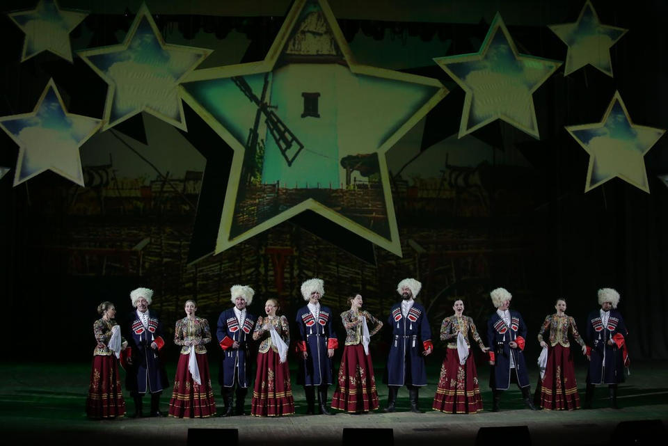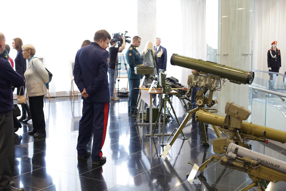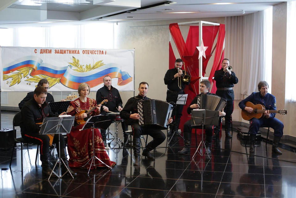 В фойе филармонии были представлены тематические выставки и инсталляции. С программой «Военные марши» гостей встречала оркестровая группа ансамбля песни и танца «Казачья застава».