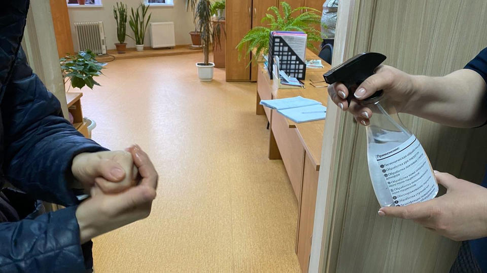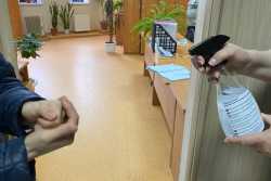 При входе в здание филармонии рабочий персонал и артисты производят обработку рук данным средством.