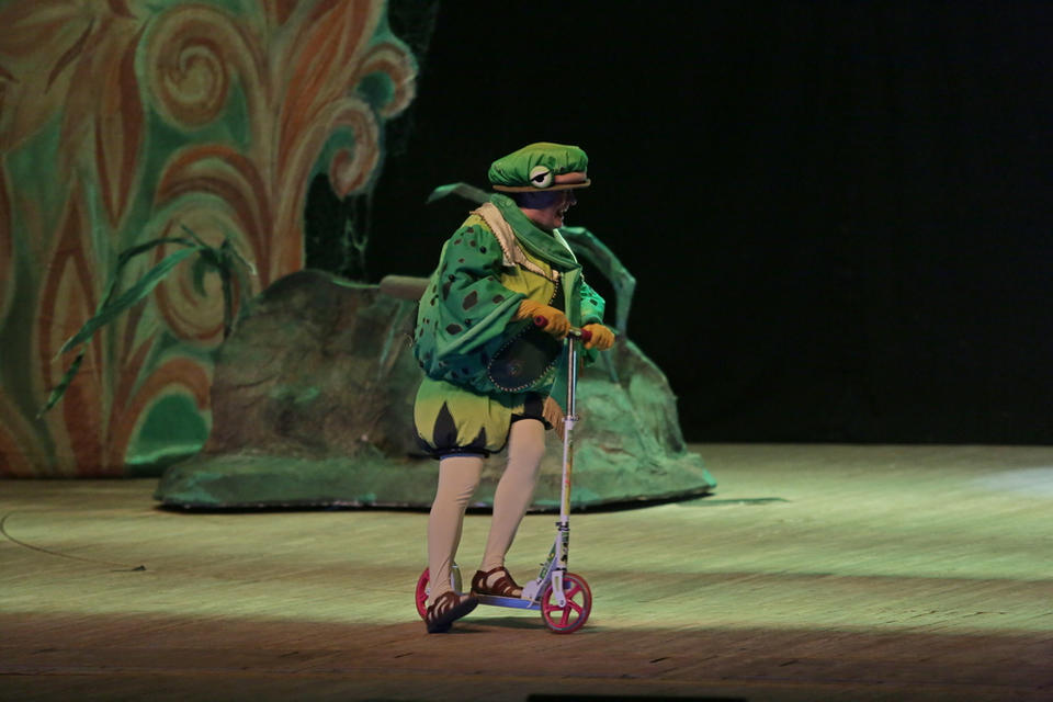 Красивые декорации, современные атрибуты (самокаты и ролики), сказочник Оле Лукойе, музыка, танцы и юмор перенесли юных зрителей в сказочный мир.
