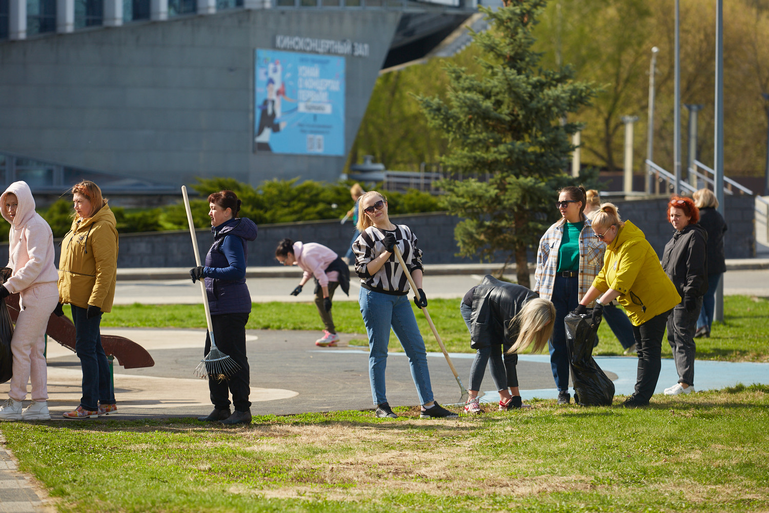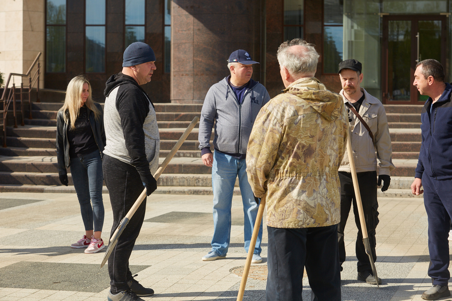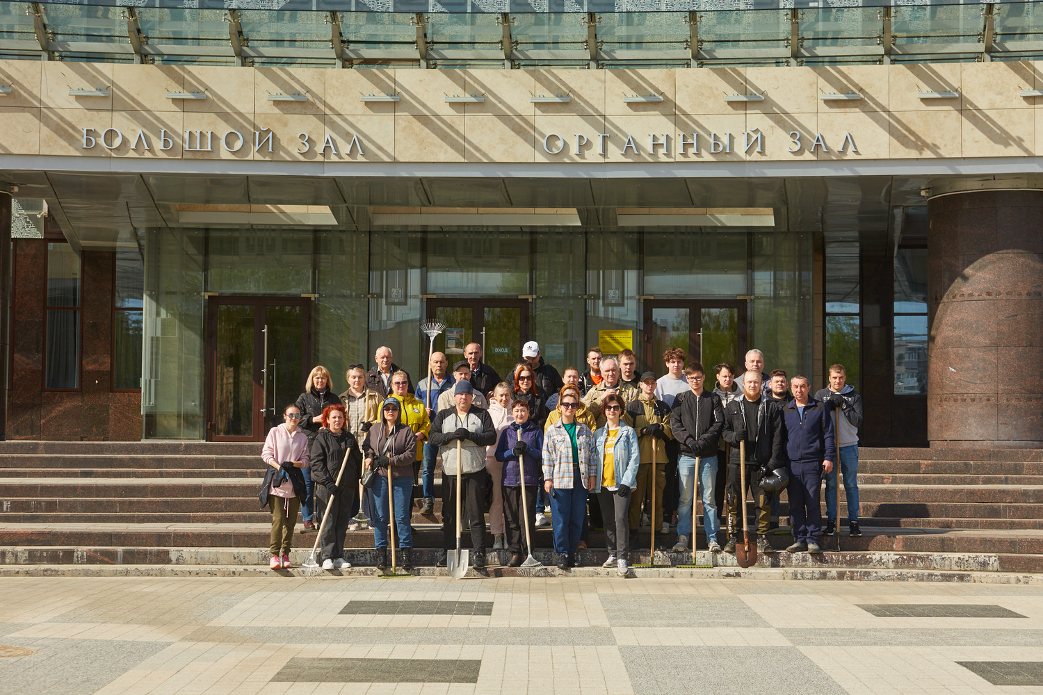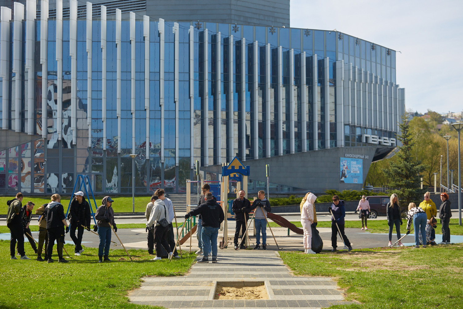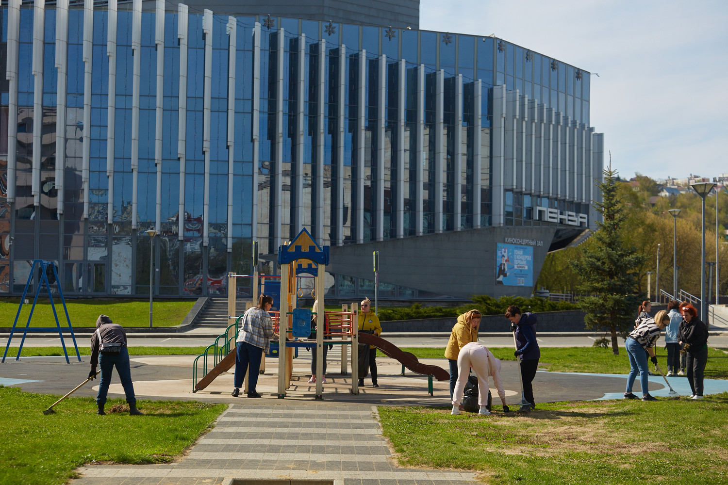 Сотрудники «Пензаконцерта» в этот солнечный день собрались на прилегающей к филармонии и киноконцертному залу «Пенза» территории. При помощи подручного инвентаря была произведена очистка всех газонов и тротуаров от мусора, прошлогодней листвы и песка, вскопана земля вокруг деревьев, особое внимание было уделено зоне детской площадки.