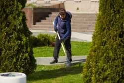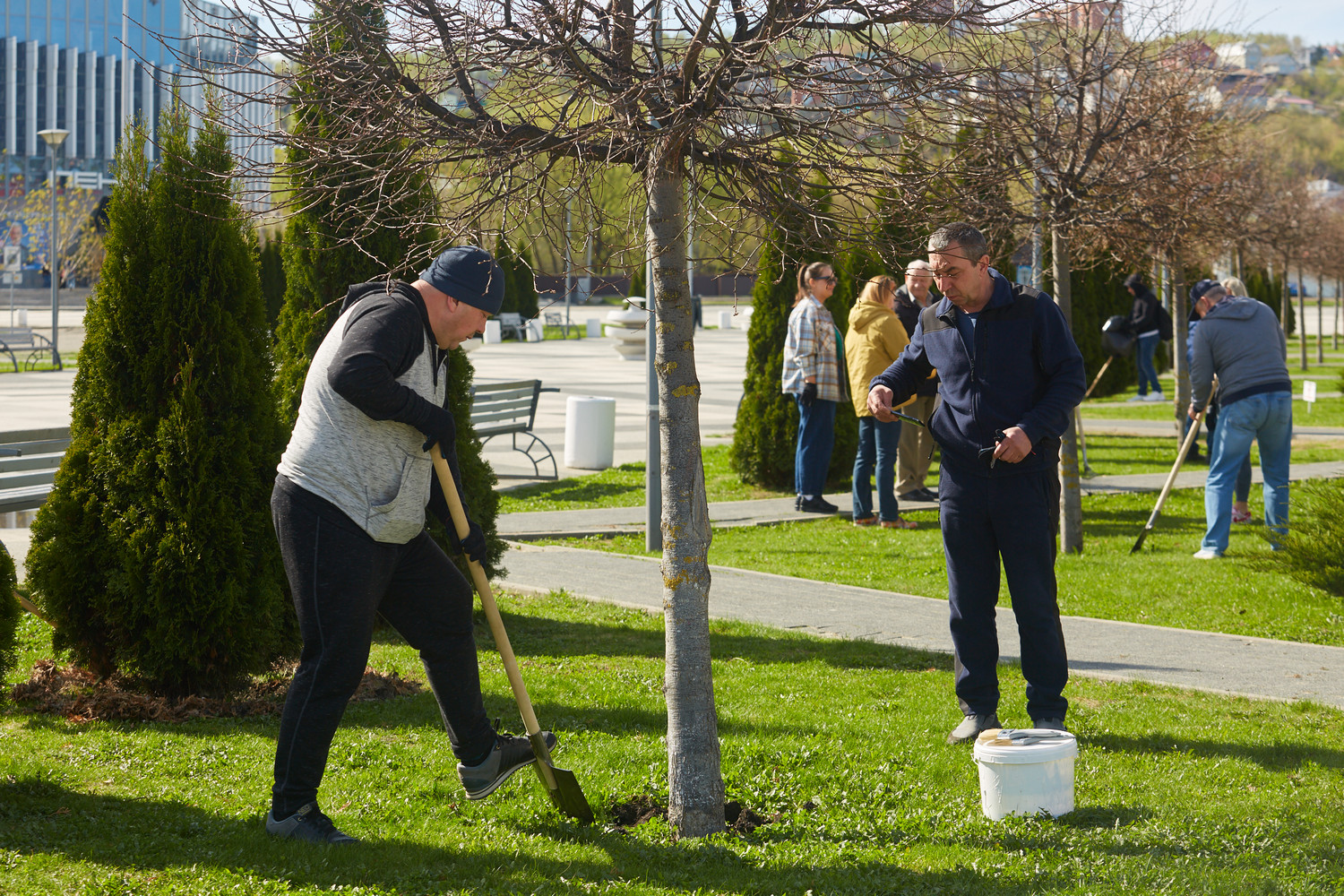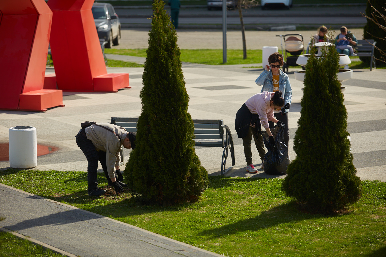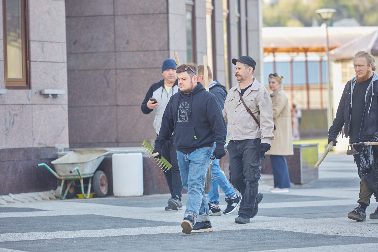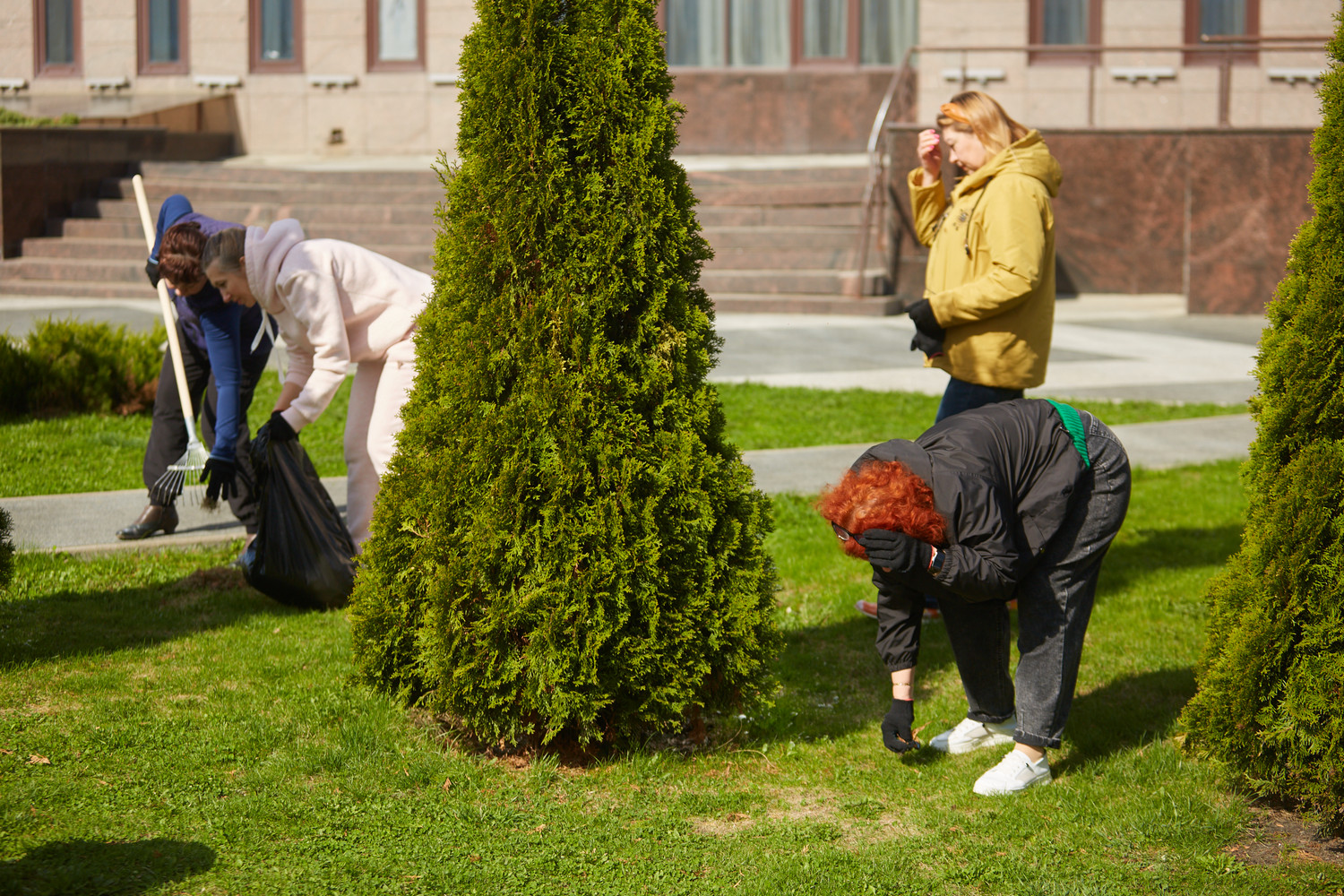 Сотрудники «Пензаконцерта» в этот солнечный день собрались на прилегающей к филармонии и киноконцертному залу «Пенза» территории. При помощи подручного инвентаря была произведена очистка всех газонов и тротуаров от мусора, прошлогодней листвы и песка, вскопана земля вокруг деревьев, особое внимание было уделено зоне детской площадки.
