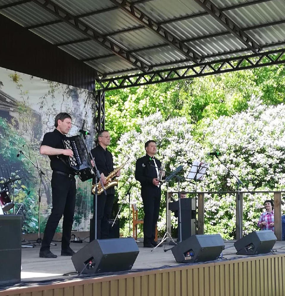 Артисты «Пензаконцерта» – художественный руководитель эстрадно-джазового ансамбля «Экспресс-бэнд» Юрий Белоногов (труба), музыкант ансамбля Михаил Насонов (саксофон) и артист ансамбля русский народных инструментов «Губернiя» Виктор Венедиктов (баян) – выступили 16 мая в селе Старая Ольшанка Уваровского района Тамбовской области, на территории усадьбы генерала-майора Алексея Васильевича Воейкова.