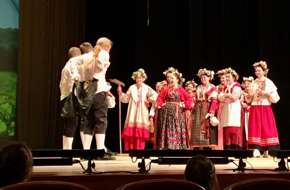 Театральное действо сопровождалось песенными и танцевальными номерами, основанными на русском фольклоре.