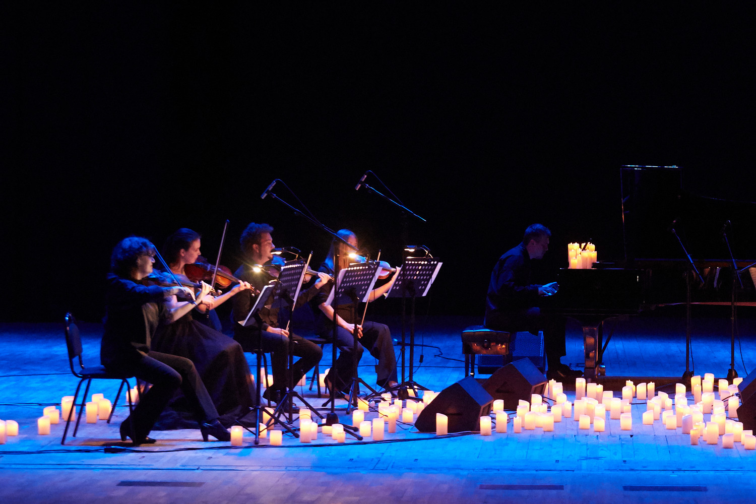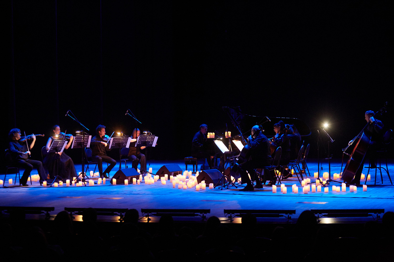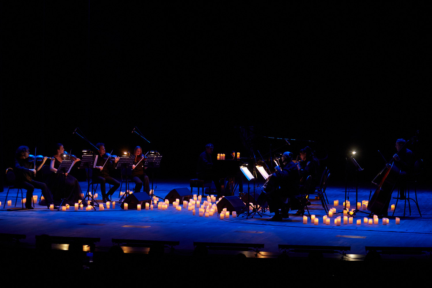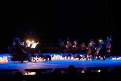 Обновленную программу по мотивам творчества великого композитора — «Саундтреки Эйнауди при свечах» — представил оркестр CAGMO в исполнении струнных и фортепиано в окружении сотен свечей.