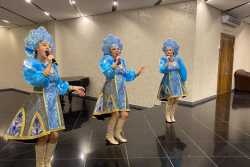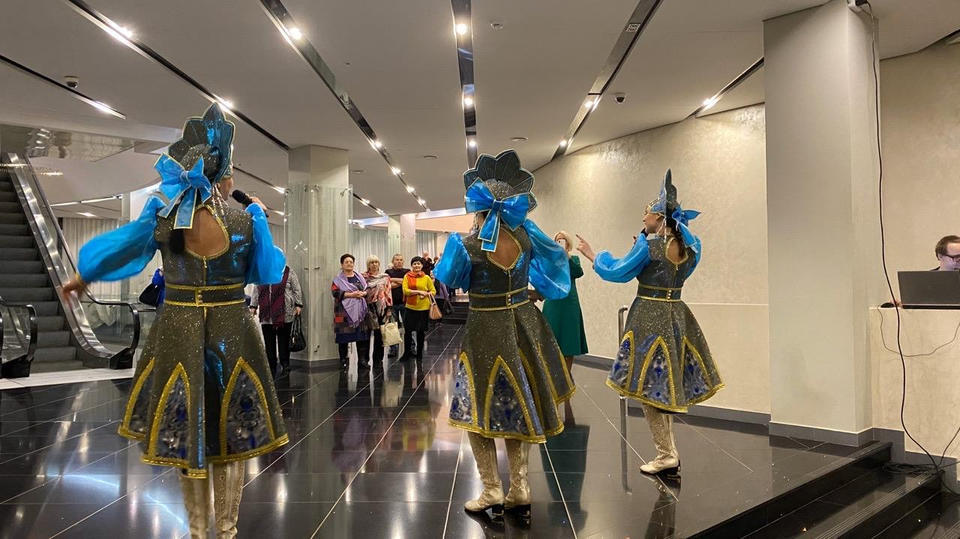 Перед концертом «Вензелей» зрителей с программой «Добро пожаловать!» встречали артисты ансамбля «Злато-Серебро».