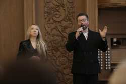 В фойе филармонии музыкальной программой гостей встречал пианист «Пензаконцерта» Александр Губарьков.