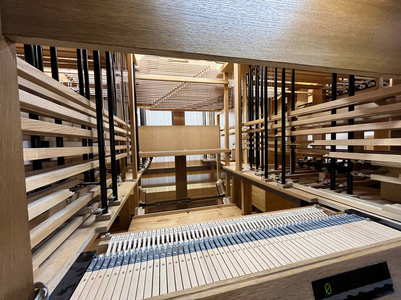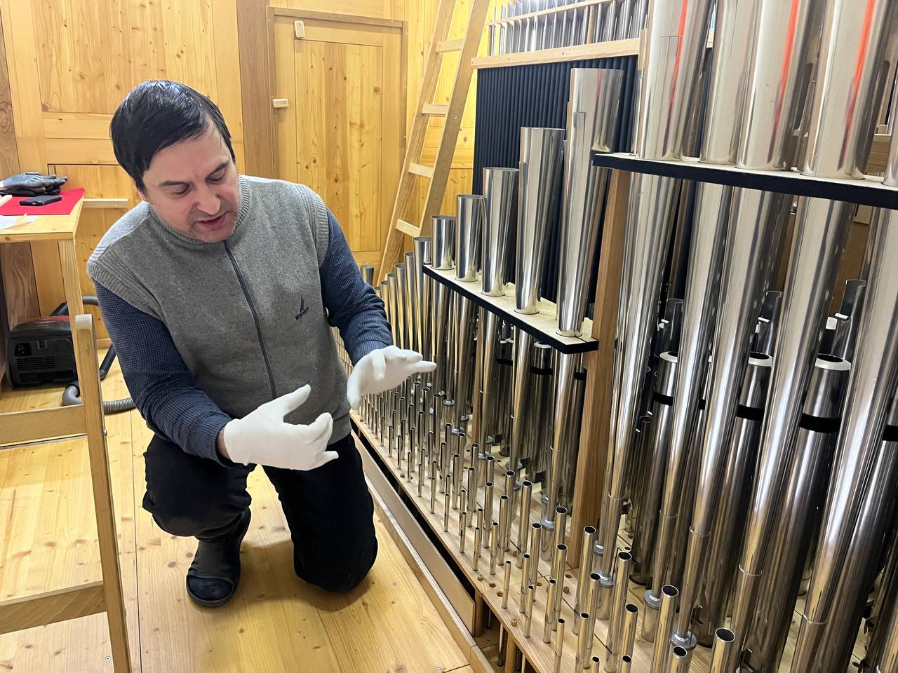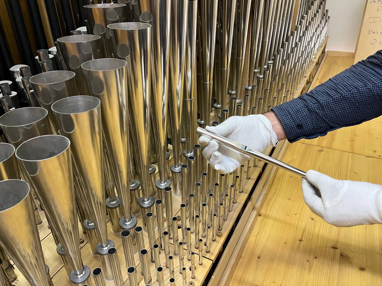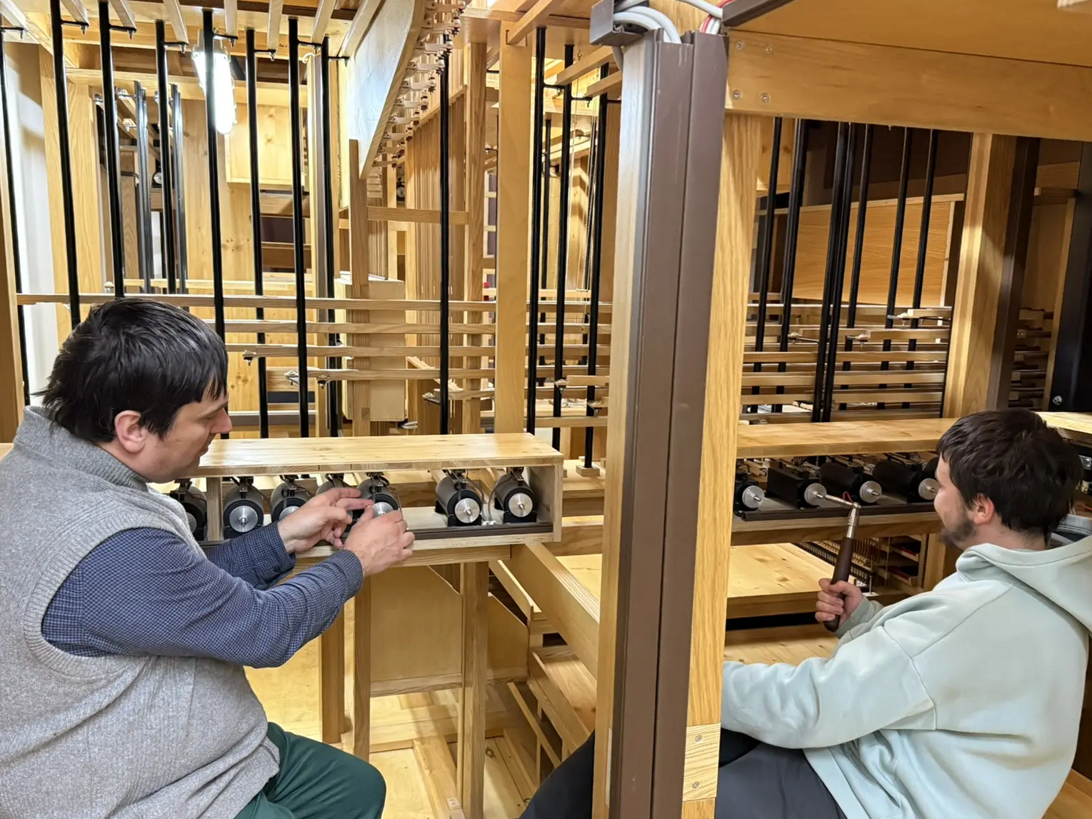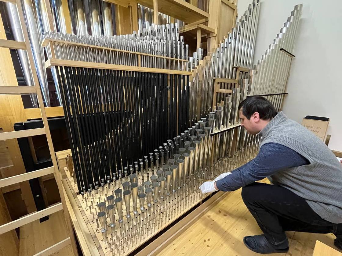 Мастера провели тщательную регулировку игровых трактур, труб и швеллеров, а также выполнили настройку язычковых регистров.